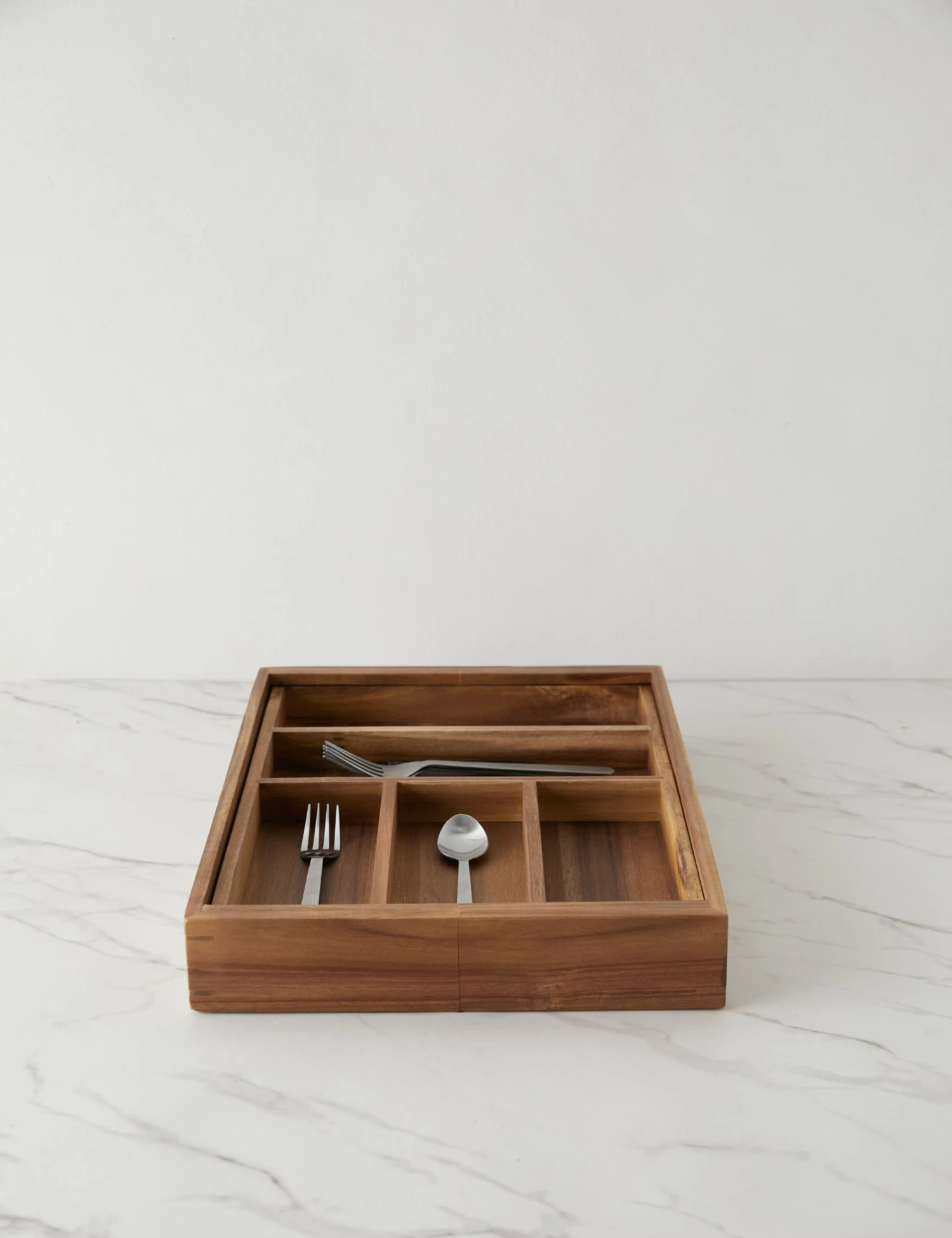 Seamless kitchen design is all about functional style and elevated details. This acacia drawer insert lets you organize your drawers with a beautiful natural grain touch. The rubber feet and expandable side ensure a perfect fit no matter the drawer.