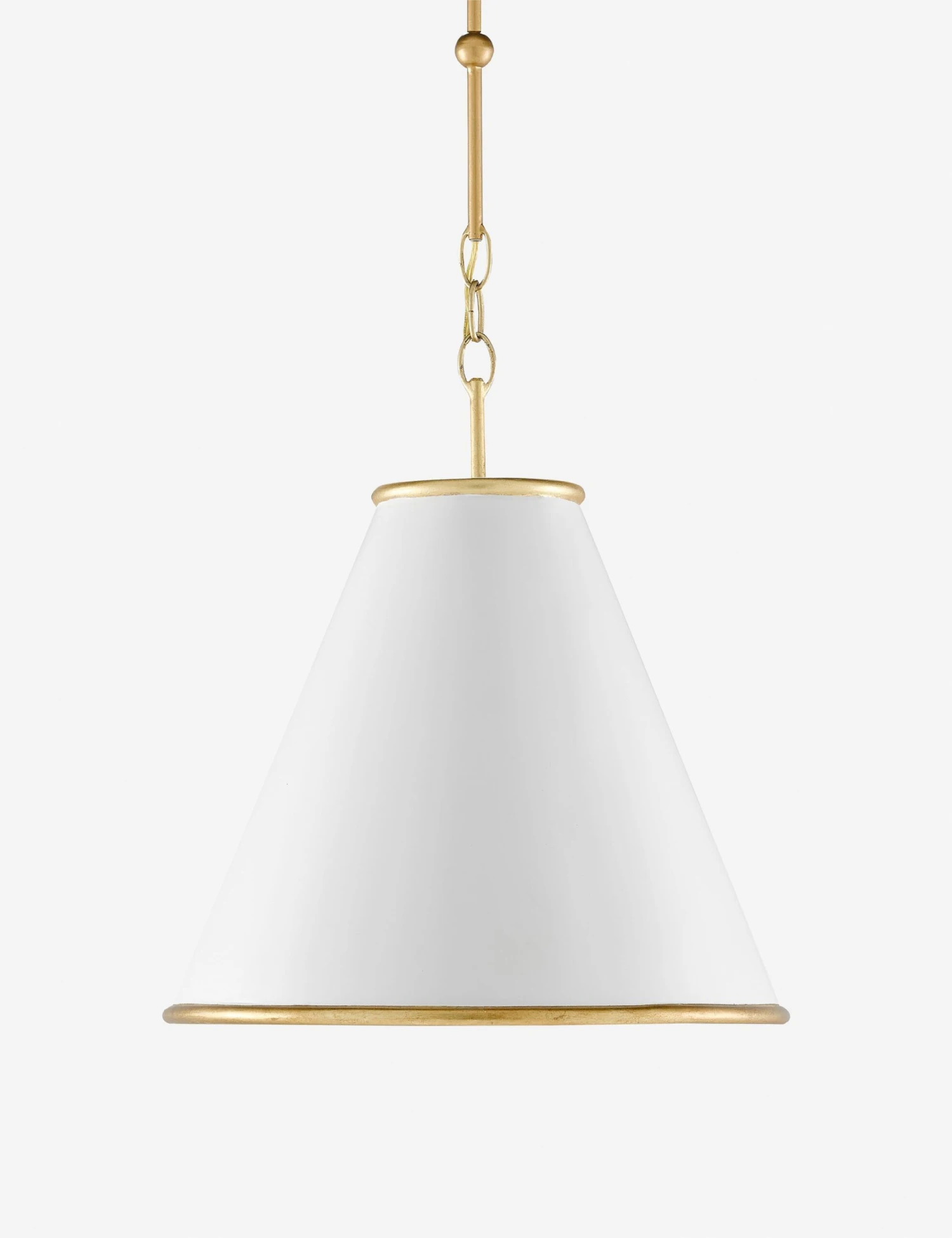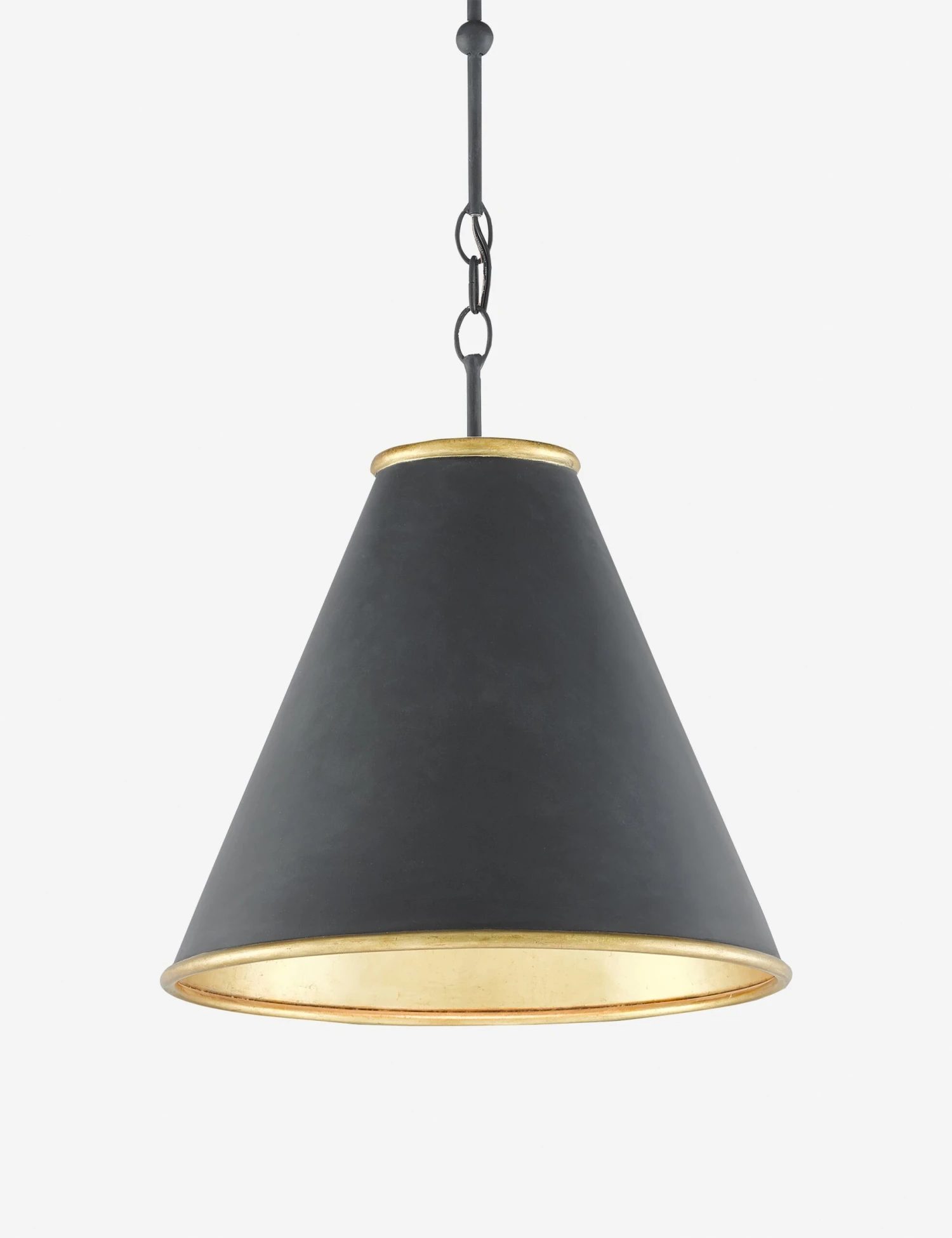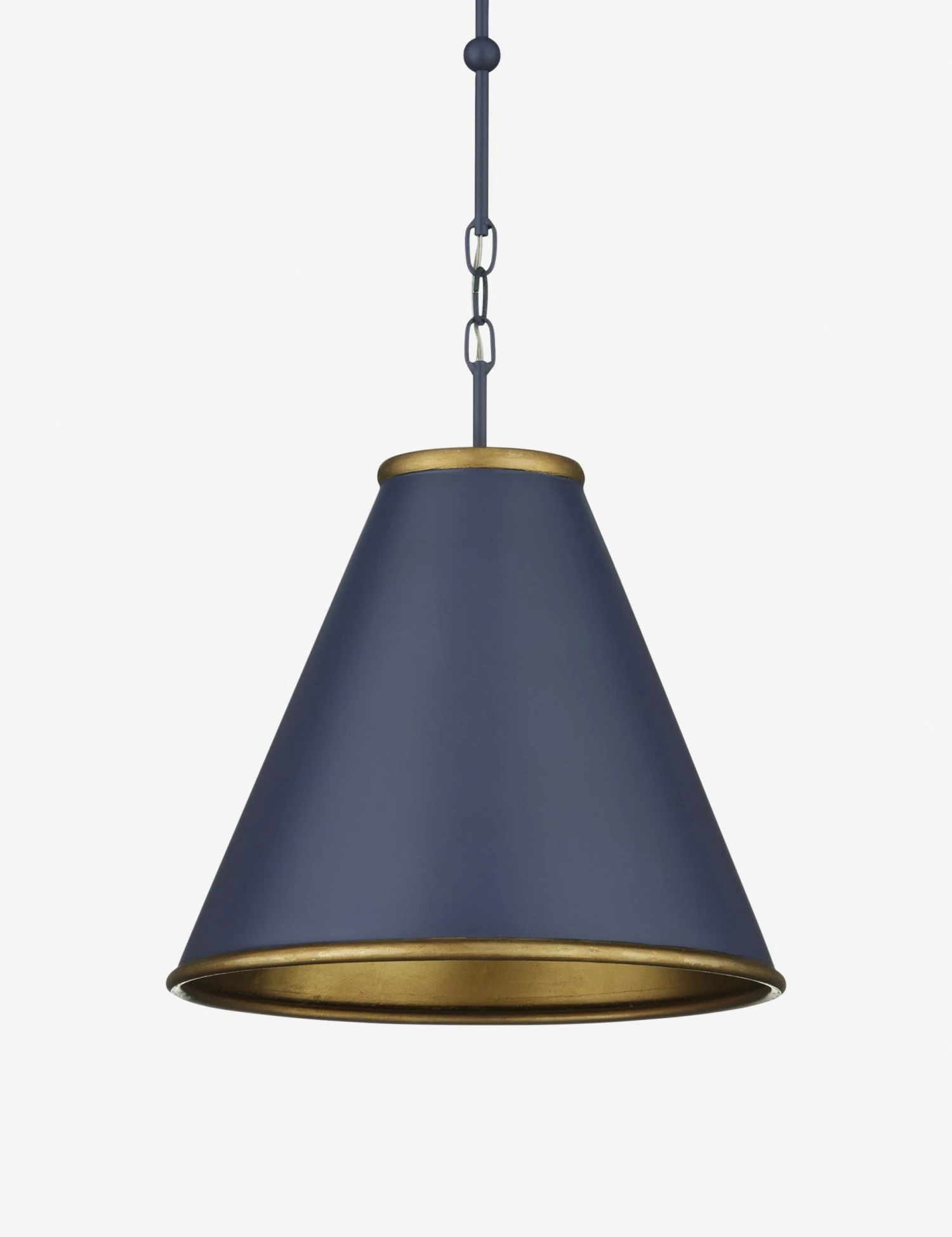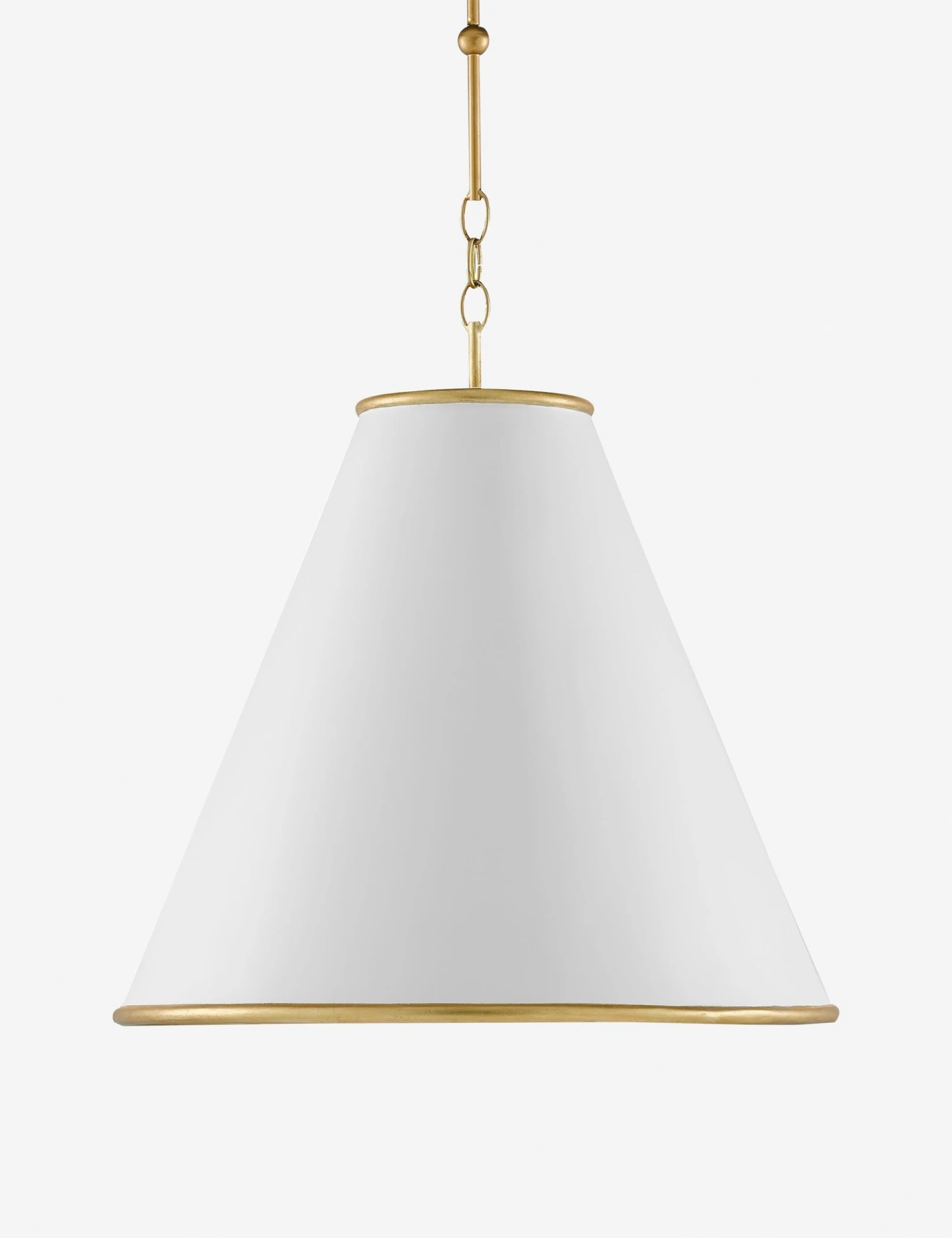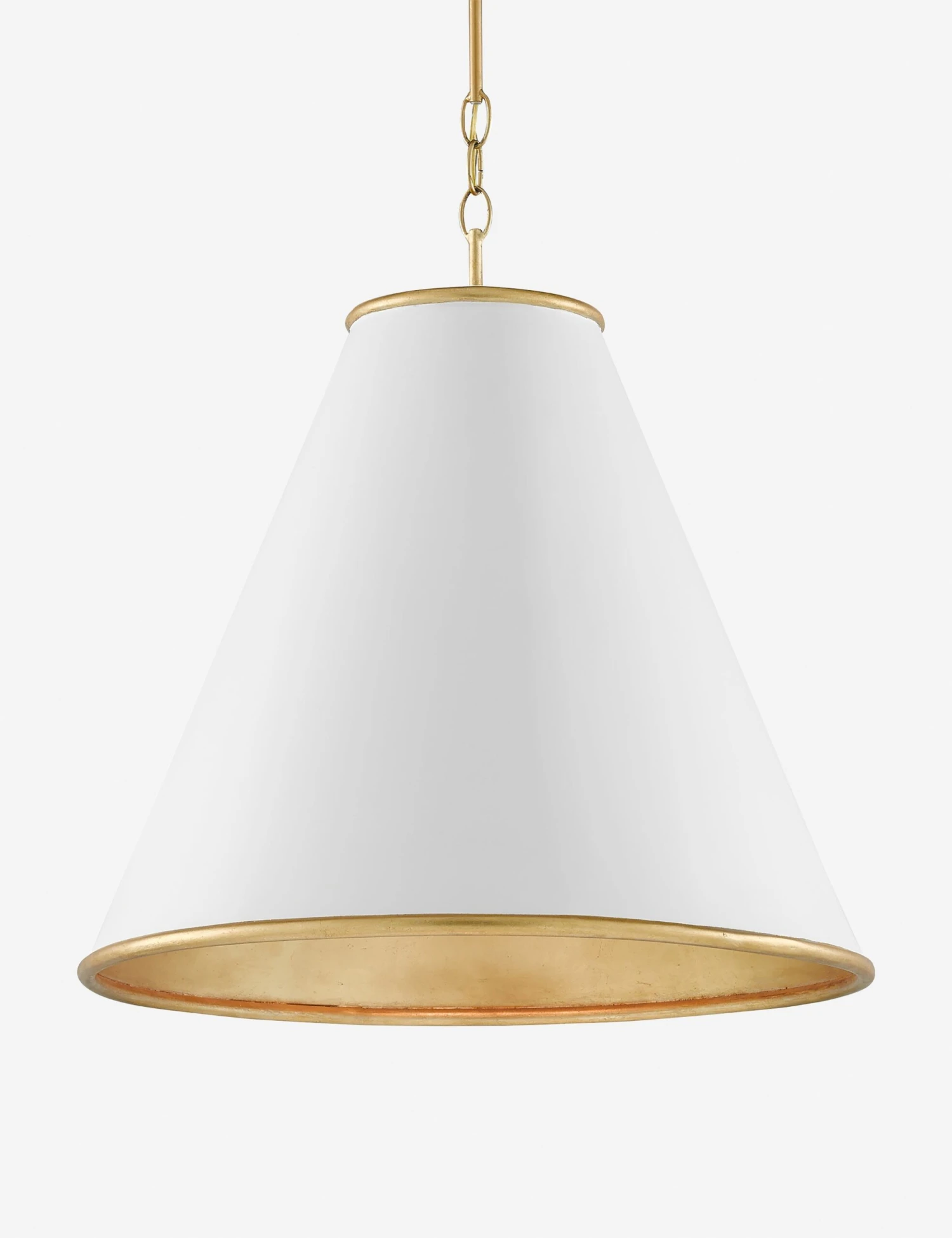 The Adkins pendant brings a bold look to the classic cone light. The matte finish is set for impact overhead, with the gold leaf lining and painted gold accent rings adding a touch of sophistication. We love this pendant in multiples for a kitchen or lounge.