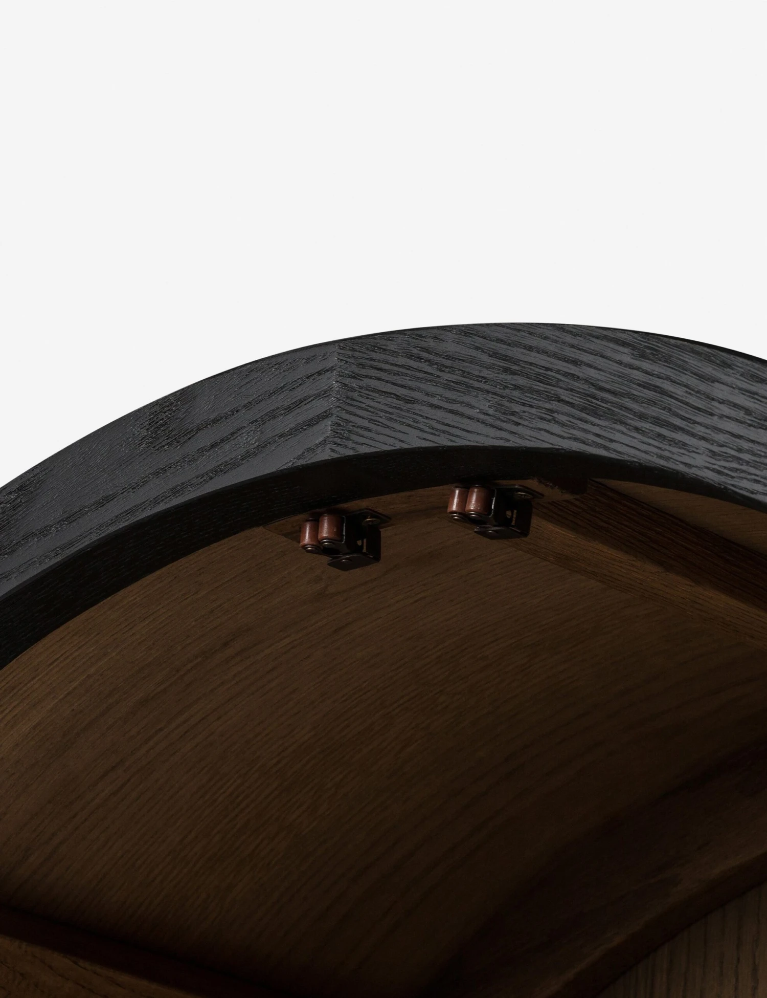 With its stately arched design, this cabinet brings practical elegance to any room. Its beautifully-crafted cabinetry of solid oak features four spacious interior shelves with panel-front doors, perfect for storing dishes, linens, and everyday essentials.