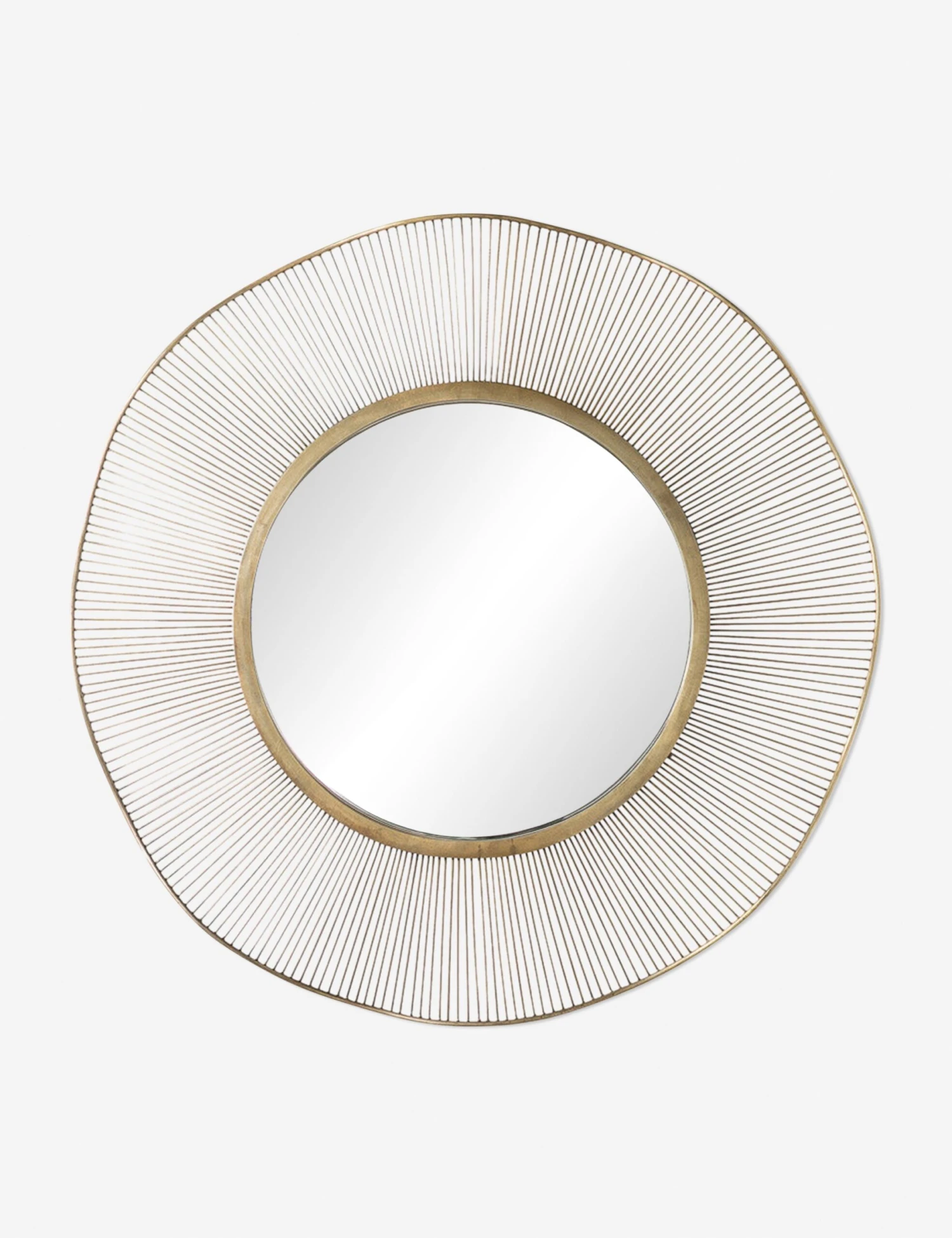 Strike a natural balance in your entryway or living space with this decorative mirror. A wavy wire frame brings organic appeal to this round mirror design, while its lustrous finish and beveled edge set off a brilliantly refined tone.
