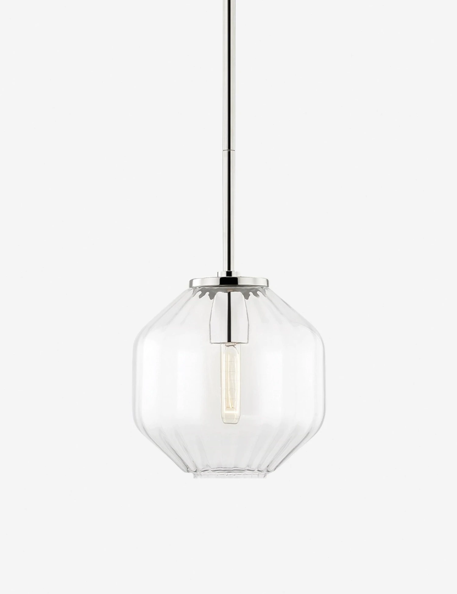 A clear pleated glass shade and streamlined design offer up radiant lighting with timeless sophistication for this ceiling fixture. Its polished nickel finish glints with understated elegance, perfect for an added touch of overhead lighting in an airy, transitional space.