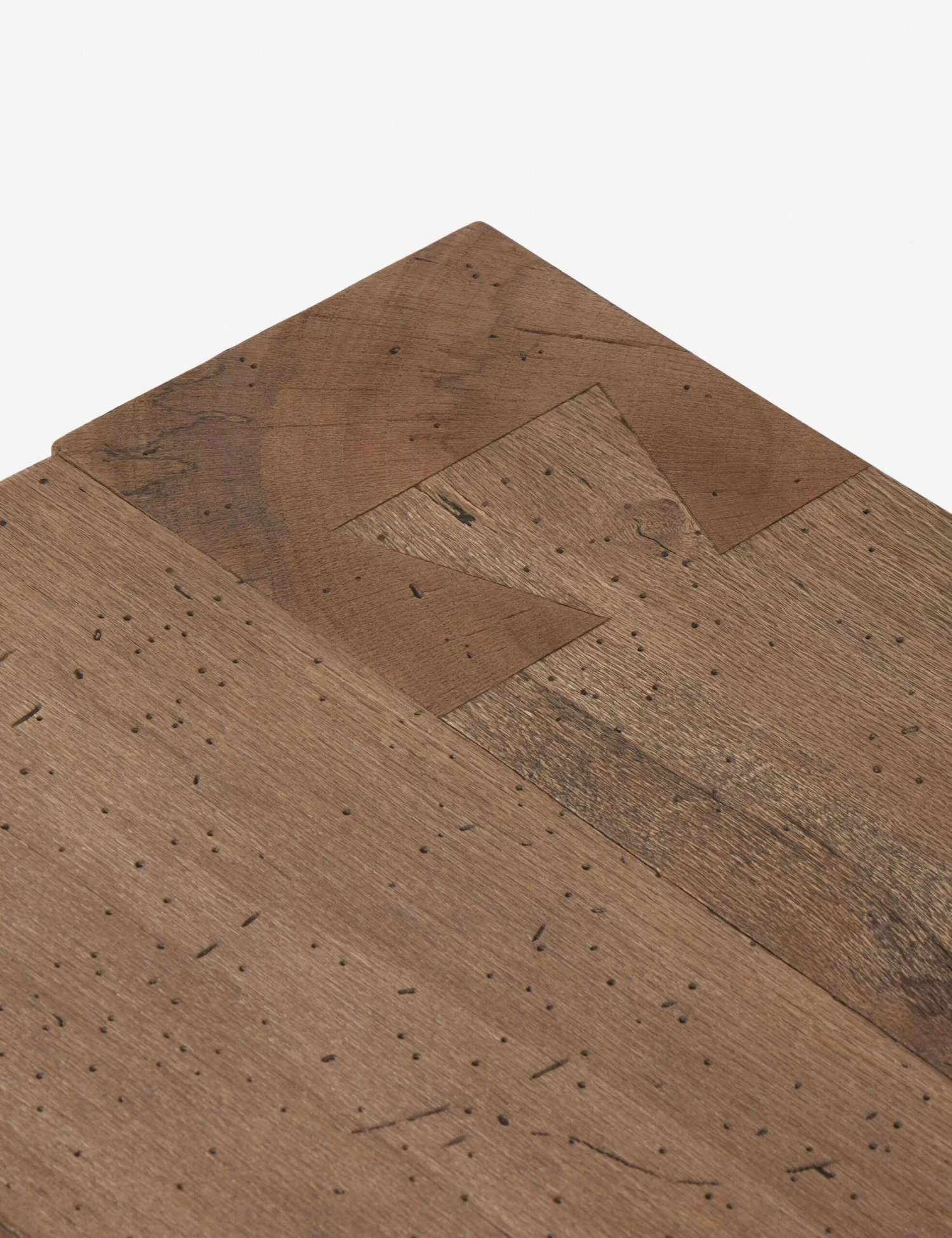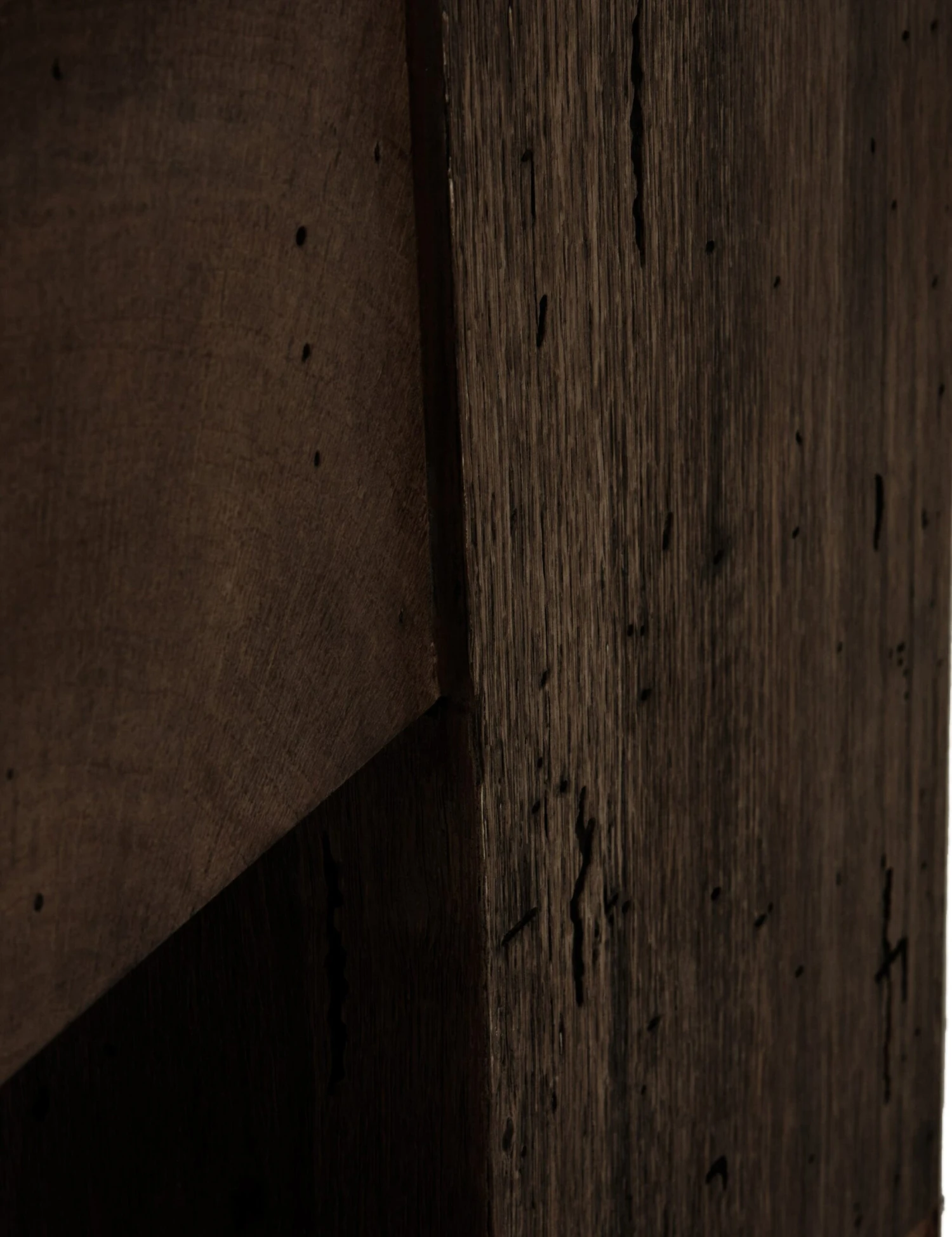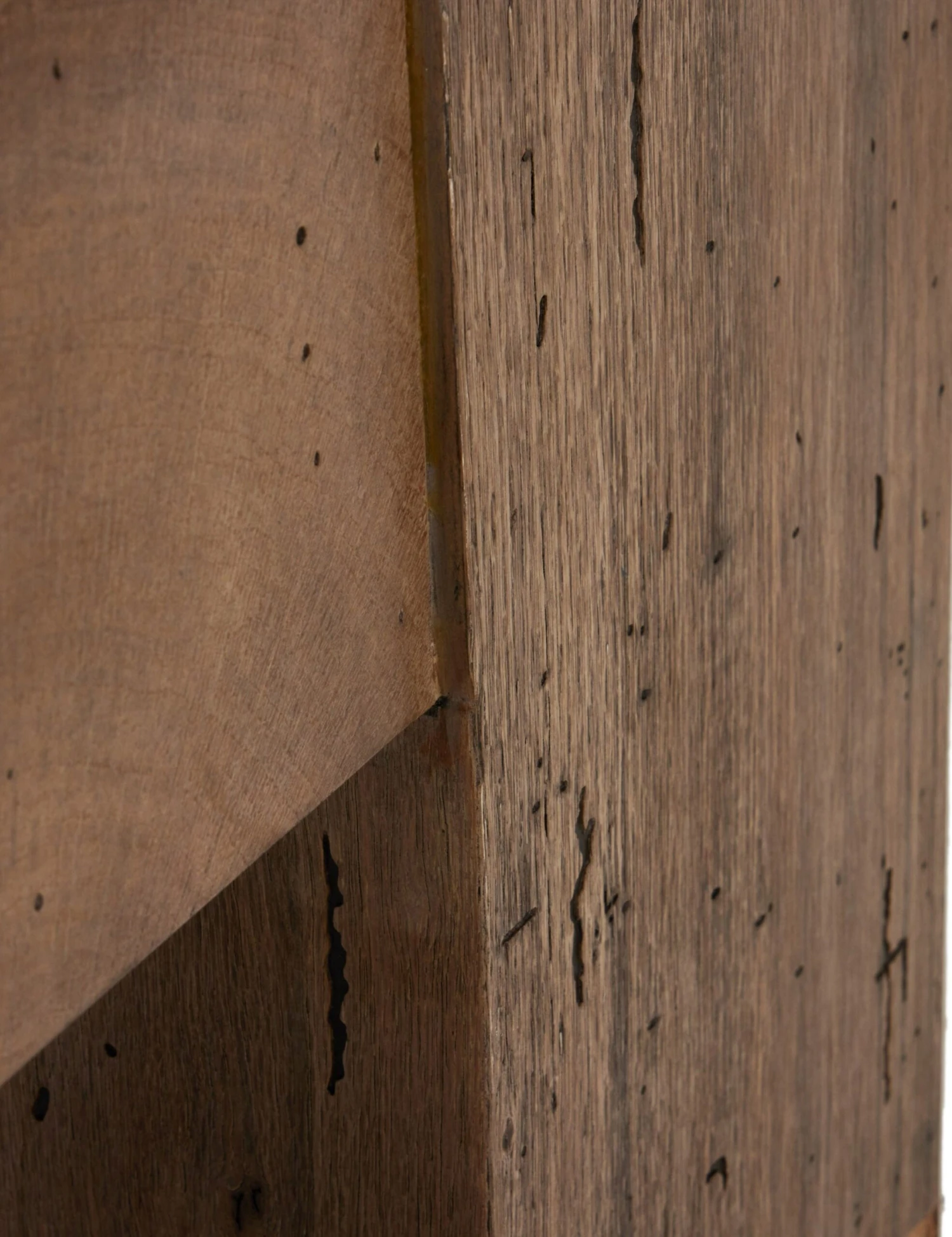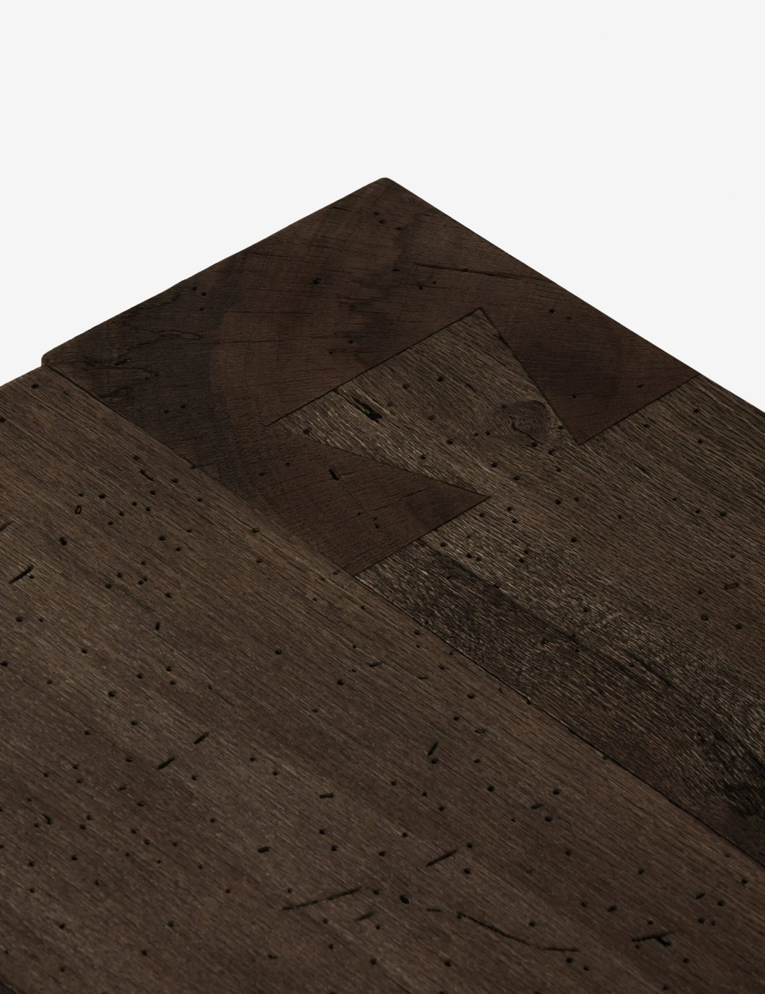 Chunky legs and dovetail joinery fashion this wood coffee table for rustic appeal. The distressed oak veneer creates a wormwood-like texture, adding endless character to its elemental design. We love the versatility of this coffee table for anchoring a farmhouse look or bringing natural texture into an industrial space.
