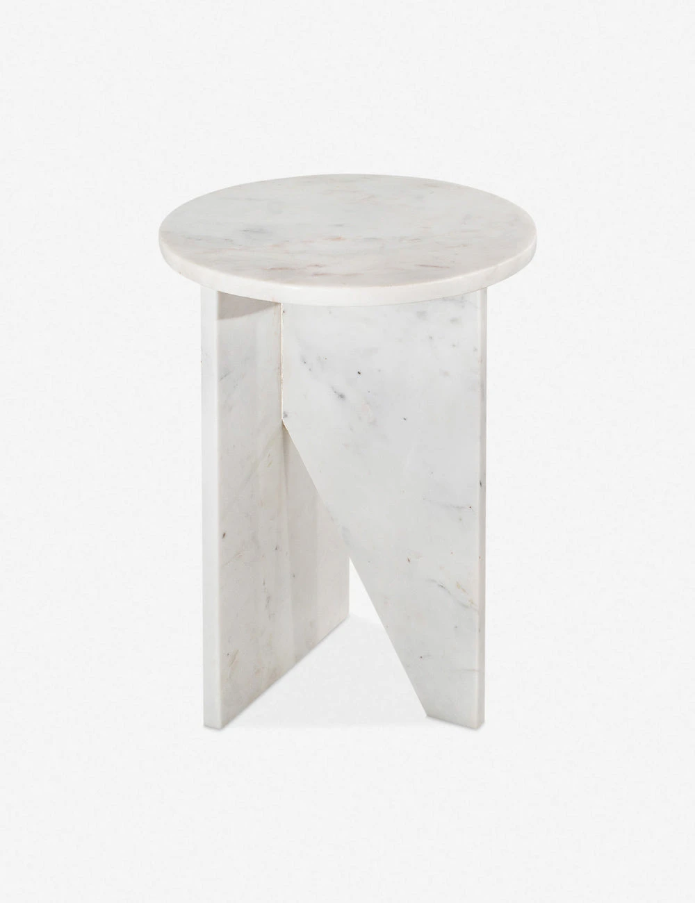 Elevate your look with a polished touch. This solid marble side table offers timeless luxury cut with geometric lines for a striking modern tone. The elemental design can be styled as a bedside or end table and evokes refined sculptural appeal.