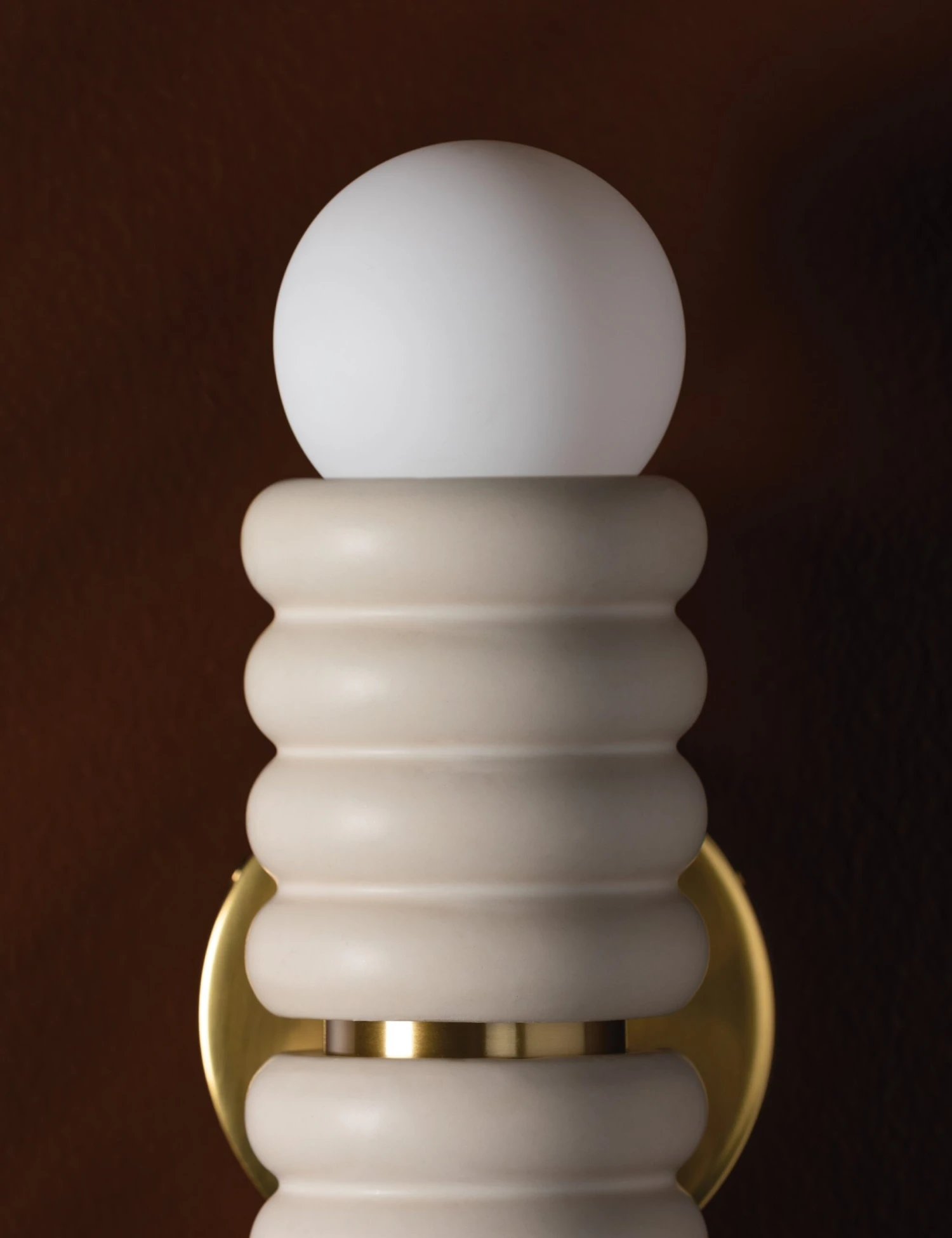 Eny Lee Parker partners with Mitzi to bring the maker’s embrace of slowness, intention, and respect for natural resources to this stunning lighting collection. Parker’s signature ceramic style brings a soft modern edge to the Bibi wall sconce. The damp-rated design offers a versatile sconce light for any living space, bathroom, or covered outdoor patio.