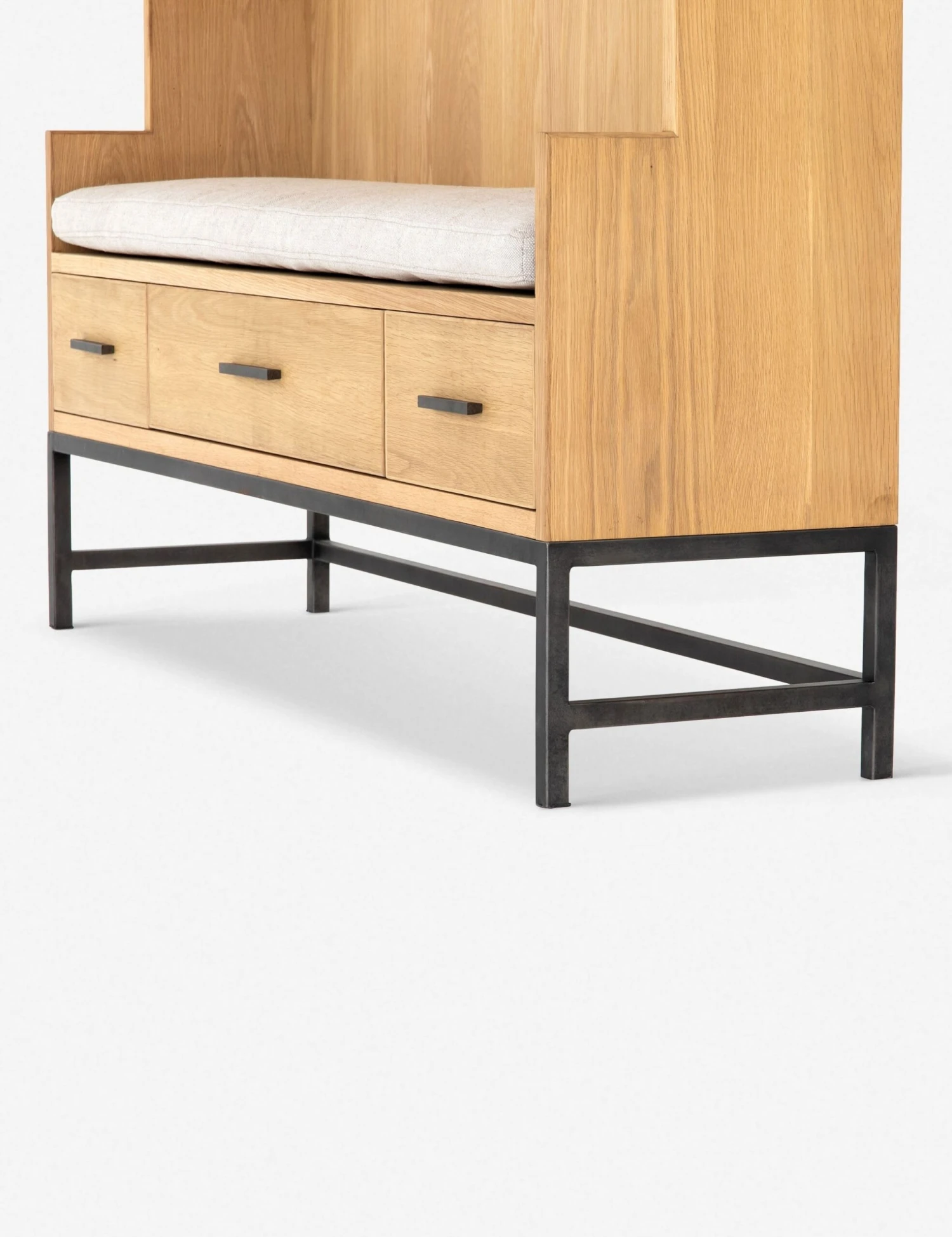 Elevate your entryway with our Bolen bench. This versatile piece is a storage bench, a coat rack and design statement all in one. Crafted from sturdy oak, it’s sure to bring style and organization to your home.