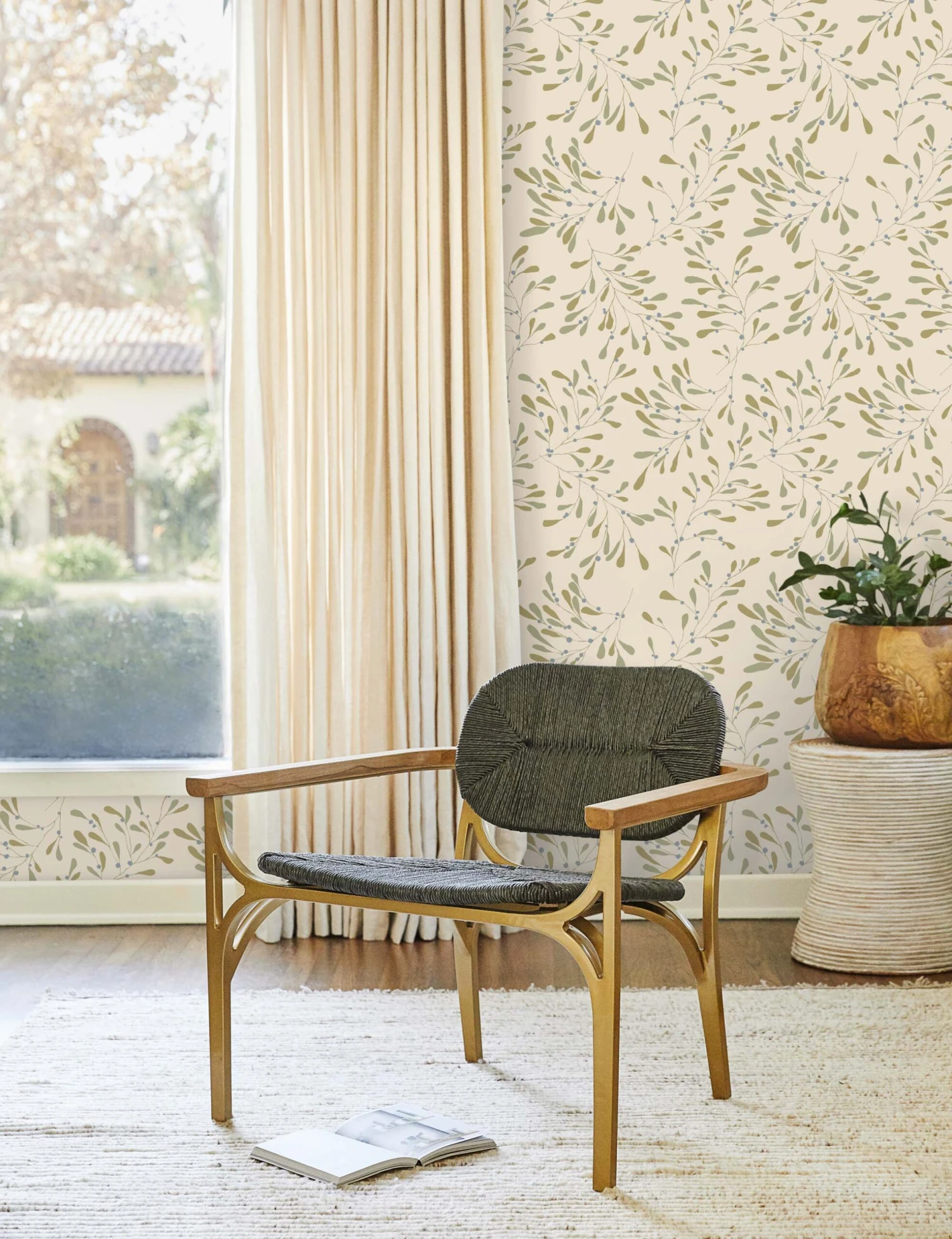 Artist Susan Hable’s experience in collage, sculpture, welding, drawing, and printmaking informs her uniquely inspired collection. Simple elements thoughtfully arranged to create a tricolor botanical motif set on a warm neutral backdrop in this wallpaper. For a paper wall décor that pairs dynamic appeal with a minimalist motif, this design in a fresh green tone will liven up a vintage-inspired living space or playroom.