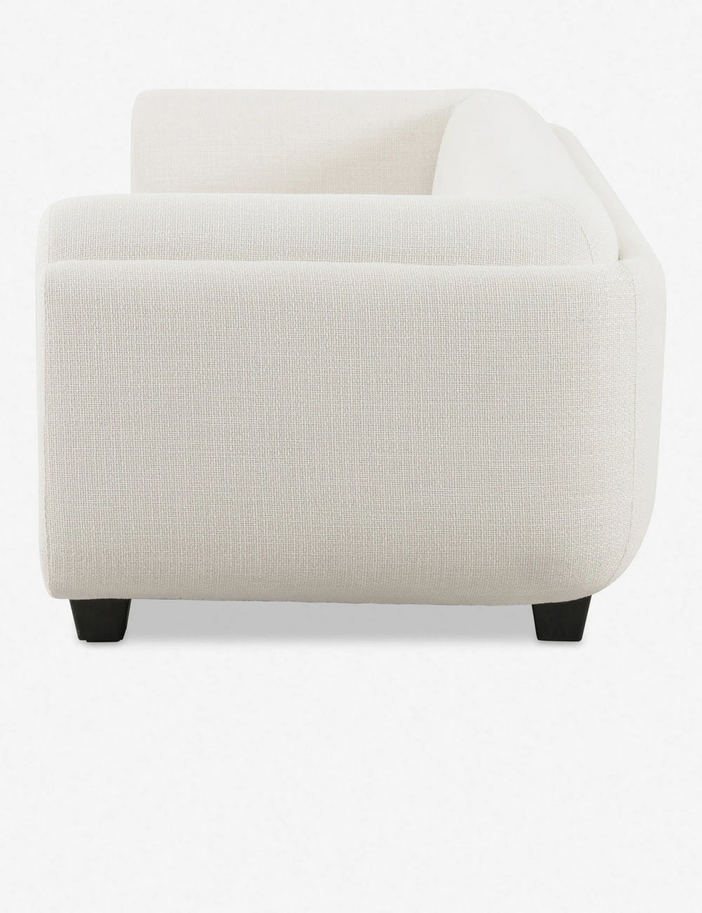 We love the versatile, trend-forward style this piece offers to a transitional aesthetic. Softly rounded lines and light performance upholstery offer a strikingly modern sofa with a practical, easy-care appeal. This couch is perfect for anchoring a large lounge or providing lots of seating in a social living space with its extra-long profile.