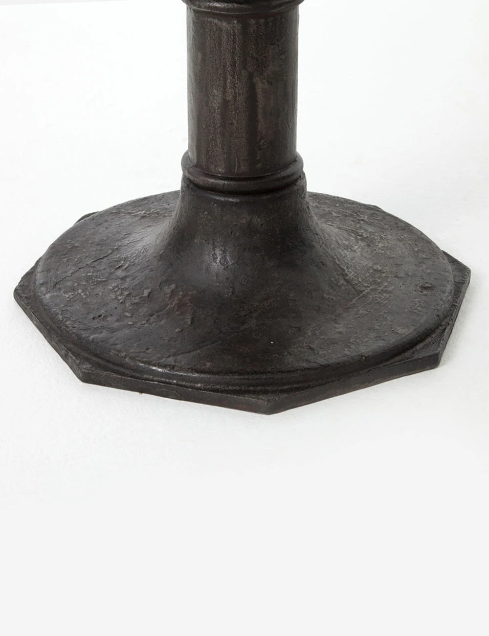 Bring a little drama to your dining room with this round, marble-topped table. The wooden baluster base brings an industrial element to the classic French bistro design.