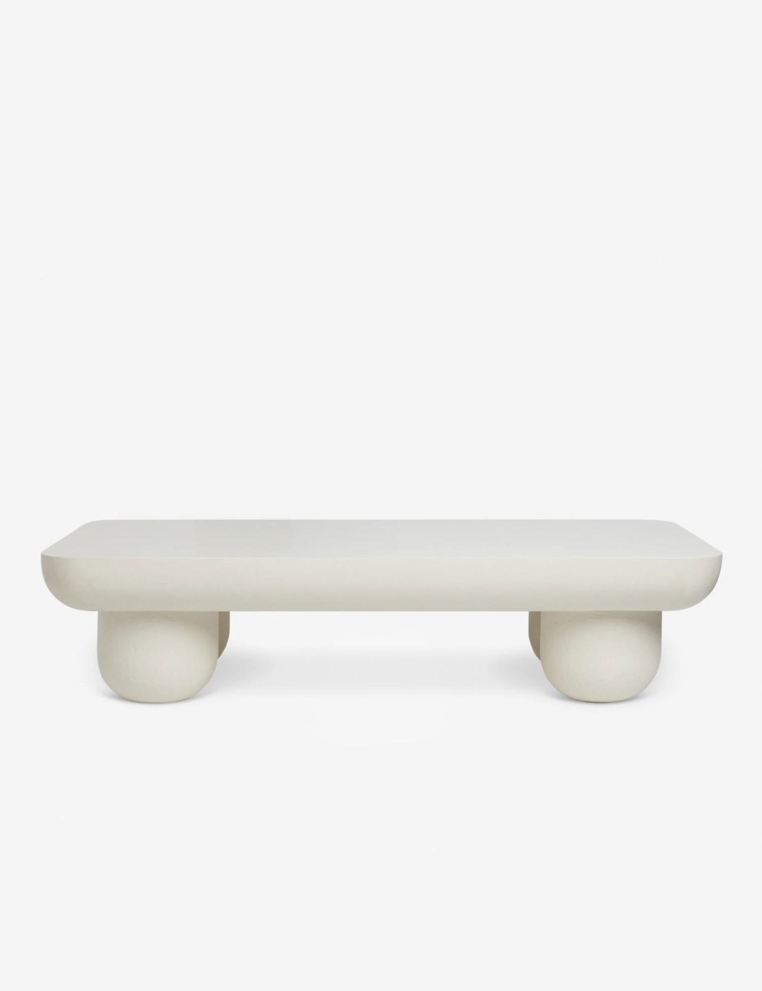Inspired by the lightness and airy feel of clouds, this coffee table’s weighty construction provides a playful contrast to its curved form and matte white finish. The rectangular design of this concrete coffee table offers a spacious surface to anchor a living room or outdoor lounge. This piece is from our exclusive Sarah Sherman Samuel collaboration and features all the trademarks of her warm, edited style.