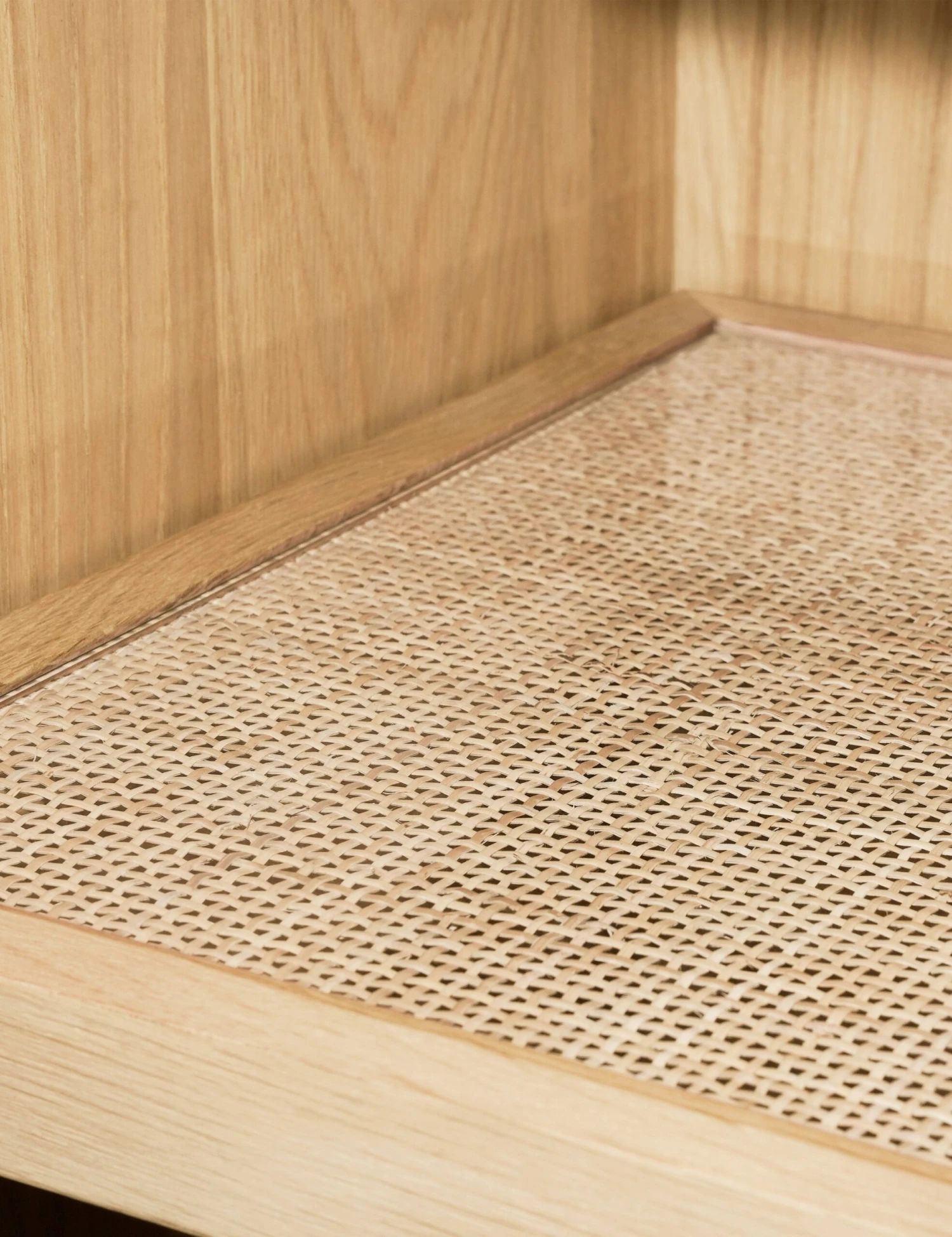 A timeless cabinet with a solid oak frame and natural cane shelving that offers a warm, modern tone to your living room or entryway. This tall cabinet offers spacious storage with a compact footprint, perfect for transforming loose ends and decor into a beautiful display.