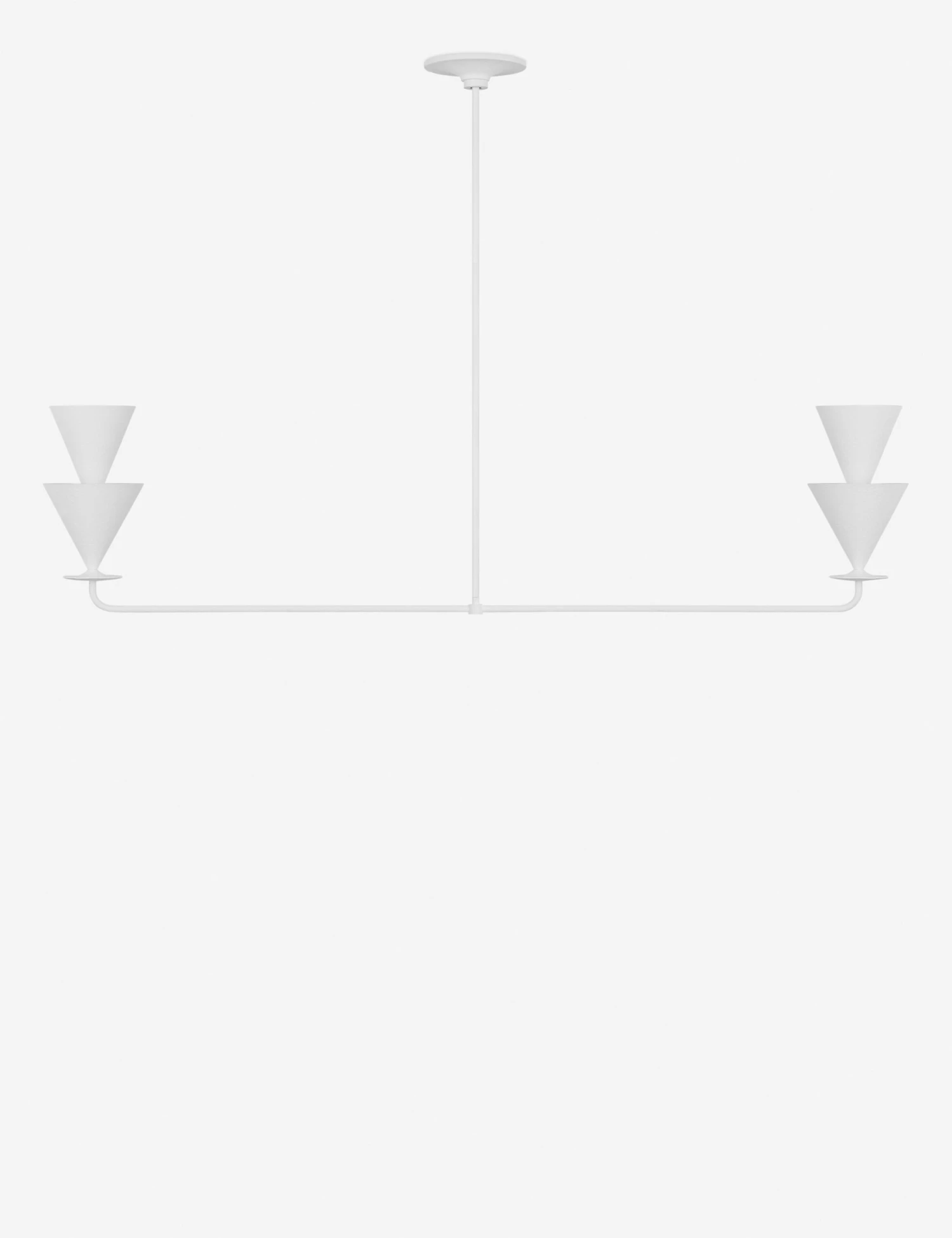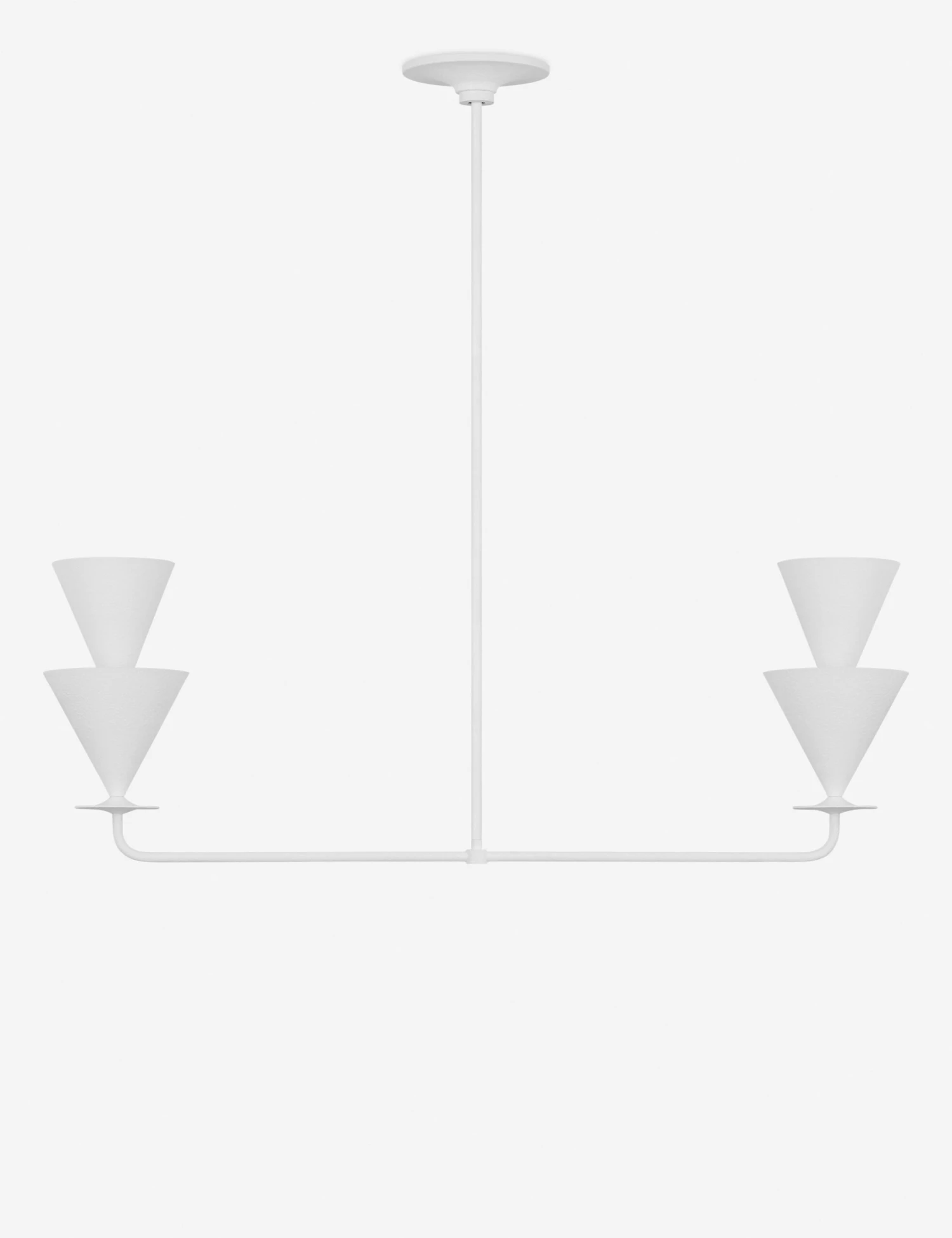 Christiane Lemieux brings her keen eye to a sculptural lighting collection made for livable design—covering every element from lamps and sconces to pendants and chandeliers. With inverted cone shades, Cornet refreshes 20th-century European styles for a modern edge. Highlight your kitchen island or dining table with this cast plaster linear chandelier.