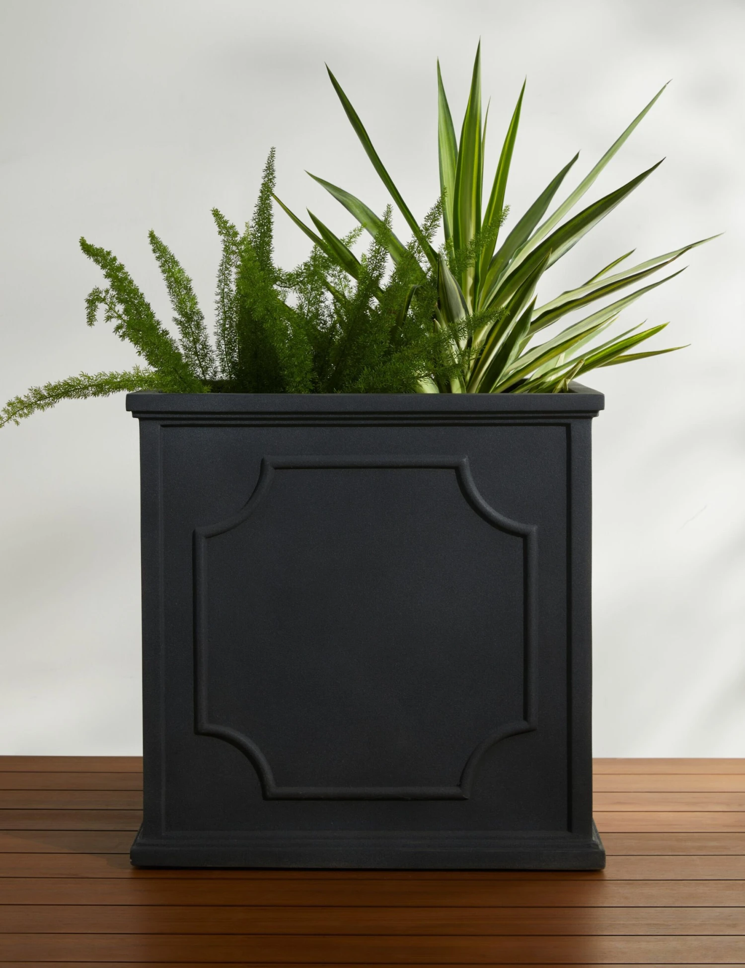 Set your outdoor style for stately appeal with the Cumberland planter. This square planter features embossed detailing and a weathered gray finish with blue undertones that will bring a timeless patina to your look. The fiberglass construction makes this planter lightweight and durable, perfect for a dynamic patio or terrace.