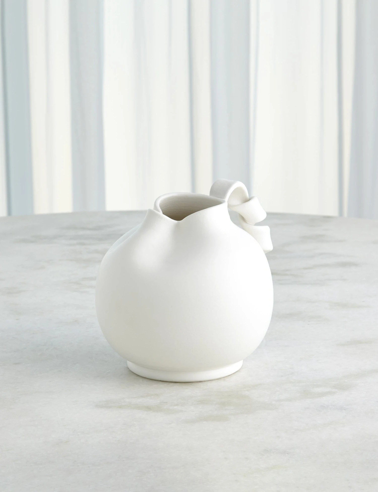 Ashley Childers brings her effortlessly artful style to a range of elements for an inspired home. White ceramic is transformed into a work of art for your table in this unique pitcher. Its handmade shape exudes organic charm with an intricate rolling coil handle that offers textural intrigue in appearance and hand—the perfect water pitcher to elevate a shared occasion.