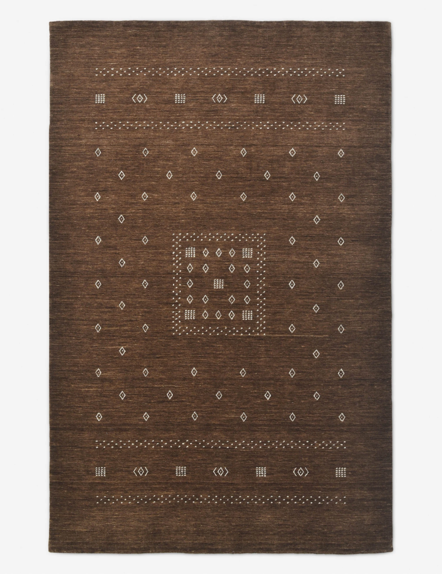 This woolen area rug has a supple, hand-loomed pile, bringing a cozy warmth to your home. Subtle color variations pair with simple geometric motifs inspired by Iranian Gabbeh rugs to bring a well-traveled look and feel to this handmade rug—ideal for a cozy family room or under your bed.
