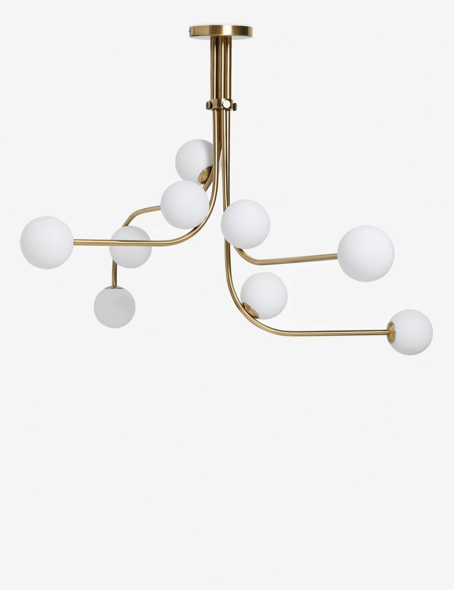 Transform your look from the top down with our Damon chandelier. Its serpentine arms hold nine globes aloft in an artful arrangement that catches the eye overhead. This large chandelier is set for statement lighting with a thoroughly modern feel.