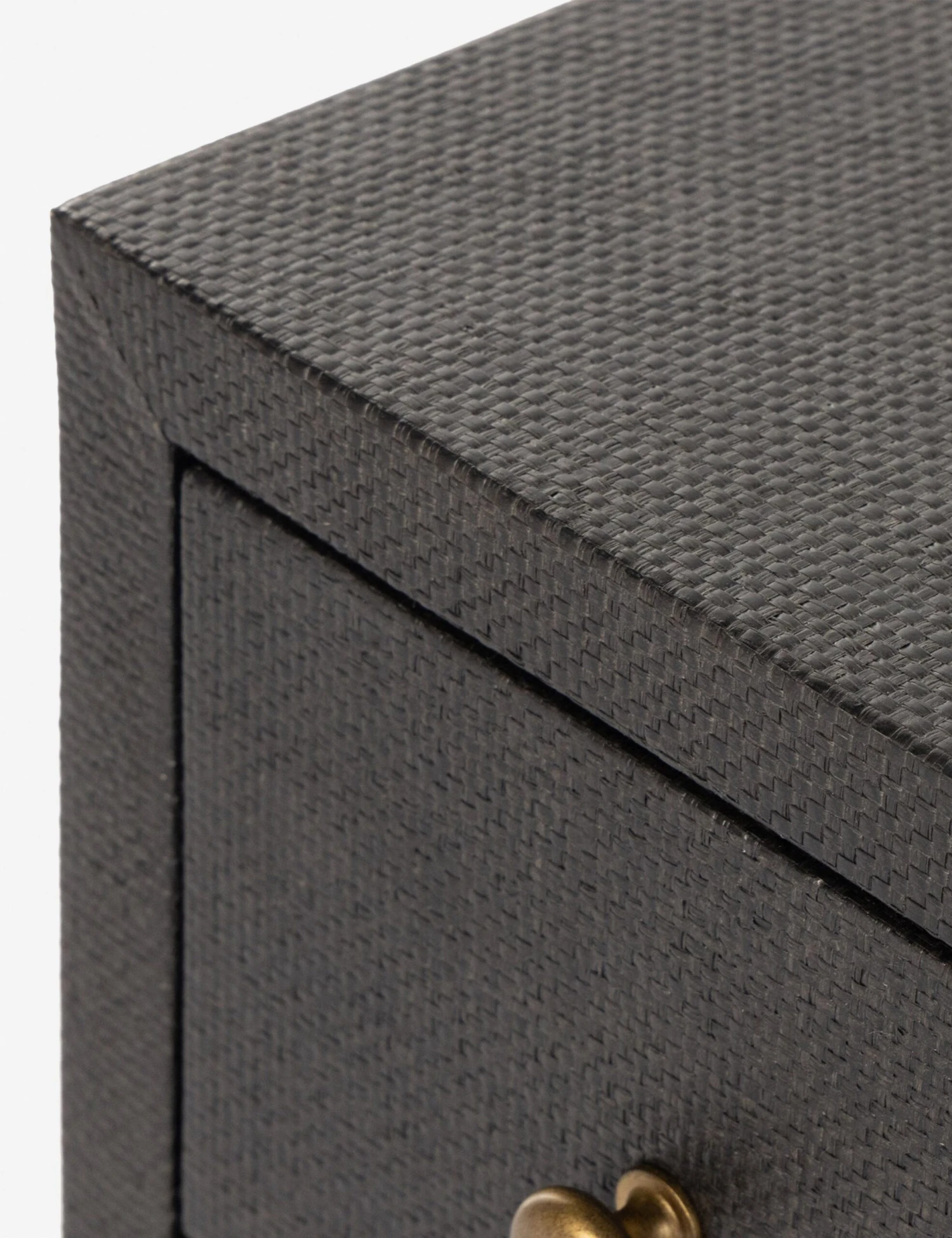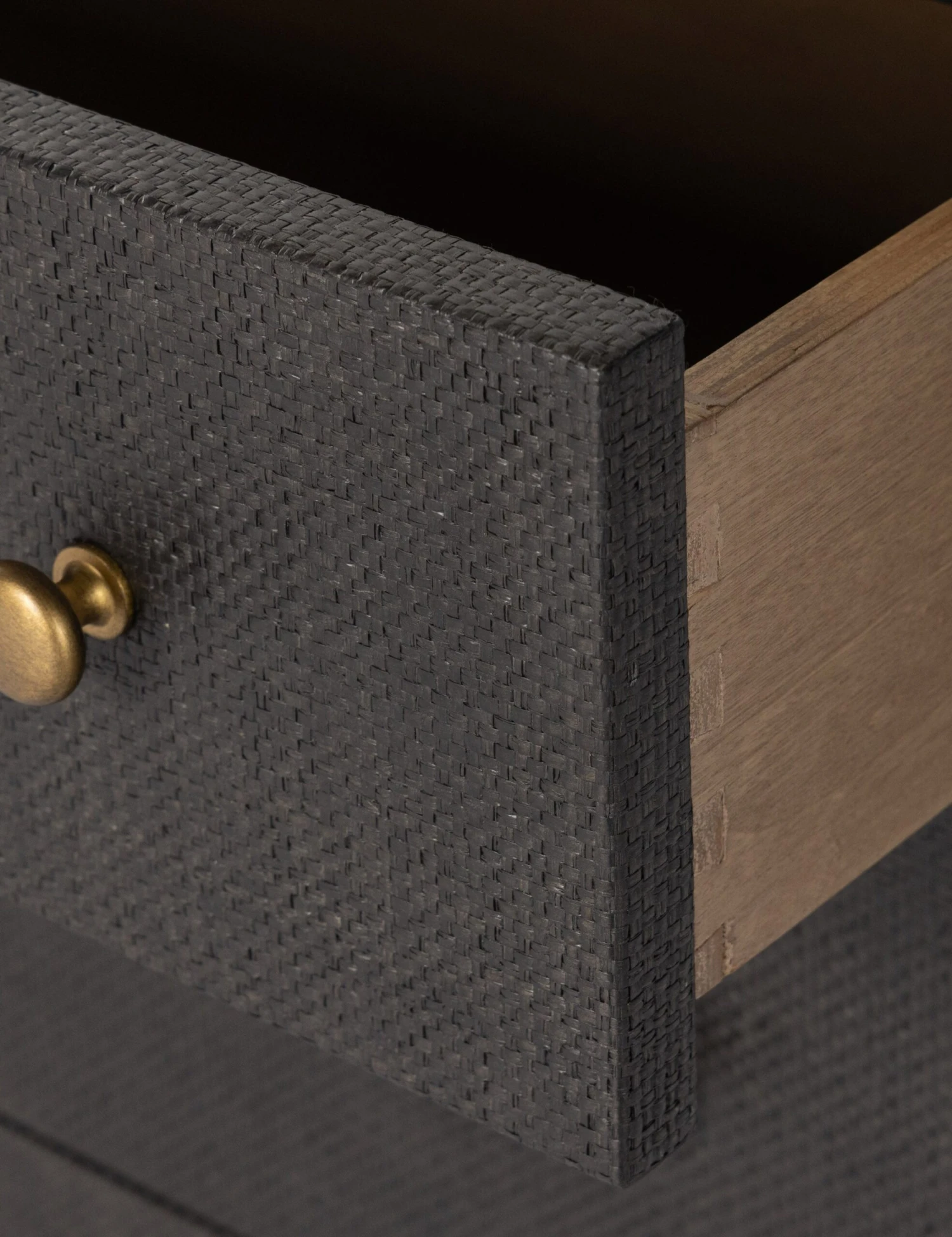 This woven raffia dresser offers textural impact with a clean, linear silhouette. The two-tone finish of the black raffia against the warm mahogany base adds impact for a modern look and feel. With six drawers atop the open base, this dresser provides plenty of storage while keeping your bedroom edit airy and light.
