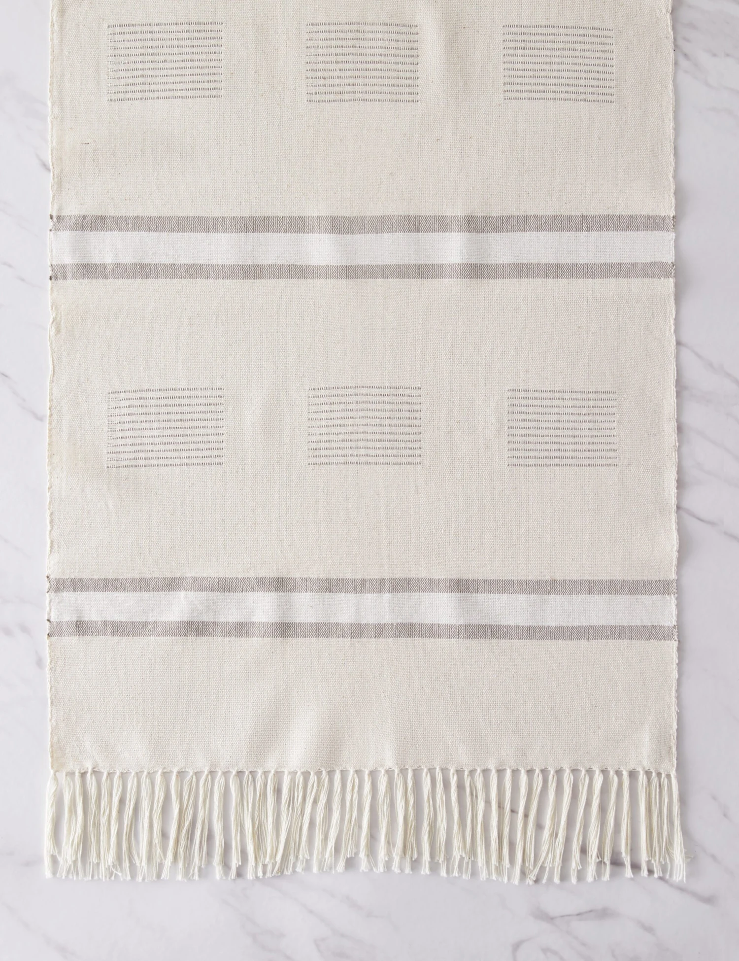 Set off your tabletop style with the artisanal touch of the Dash runner from Minna. This handwoven runner’s neutral palette and striped design can offer a sophisticated foundation from your dining room table to an entryway console. Each piece is made by a family-run cooperative in Mitla, Mexico.