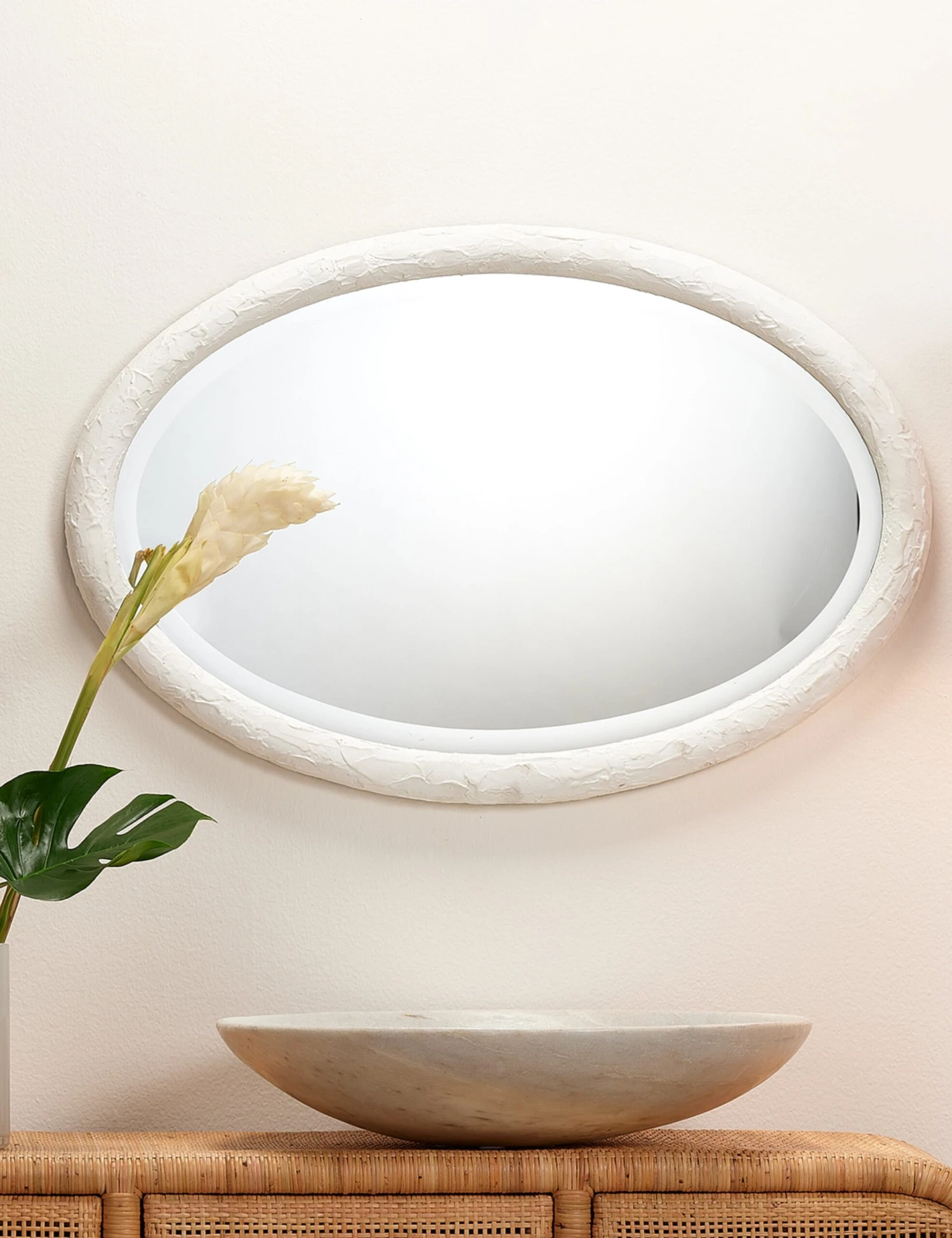 Denma offers a fresh update on oval mirror designs with a rounded frame and contrast finish that pops in the room. We love this versatile mirror for adding light and depth to an entryway or small-space design with a chic touch set for modern appeal.
