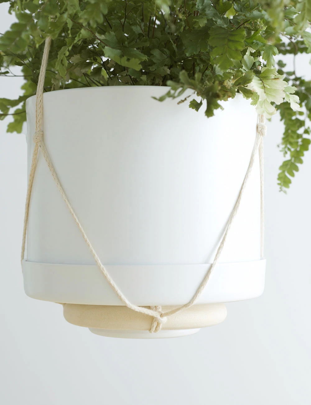 Inspire a fresh balance in your bedroom, kitchen, or living space with this hanging planter set. The modern design features a self-watering system with drainage and a separate no-drip dish to ensure easy care and healthy growth. This sleek planter is perfect for trailing plants and attaches to the wall with included hardware.