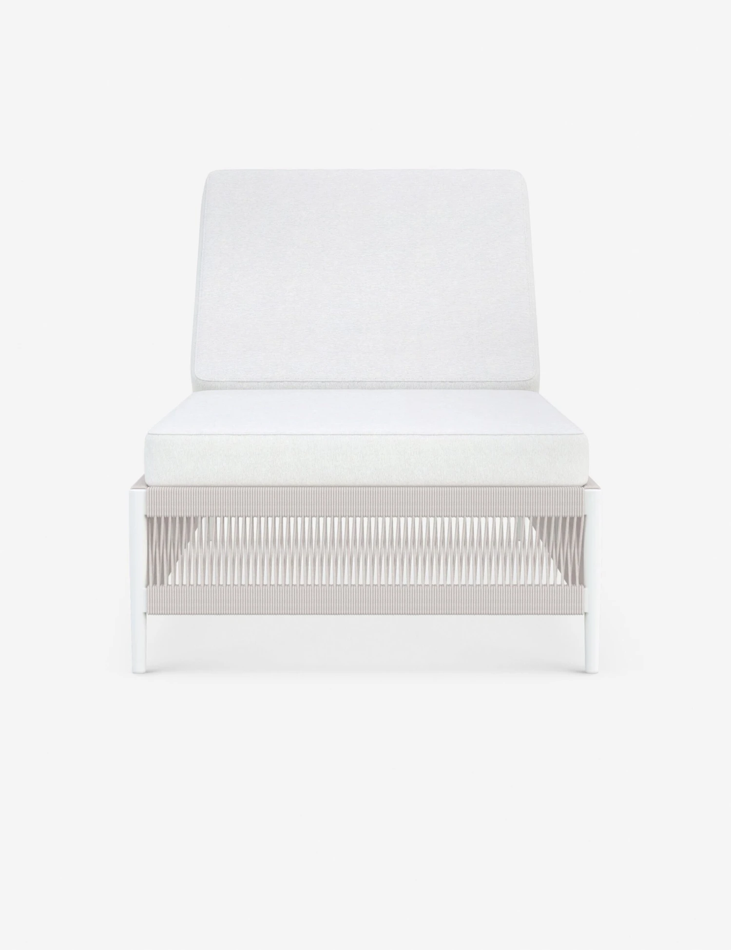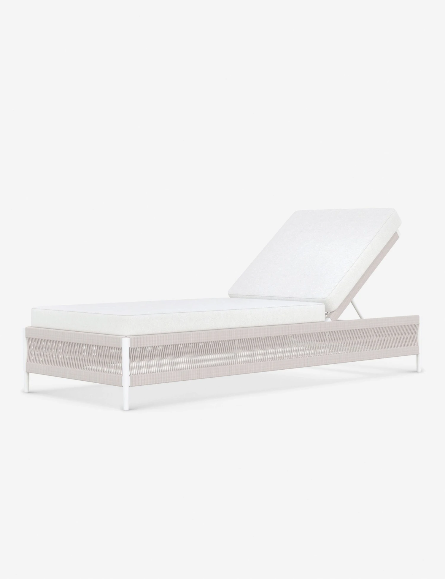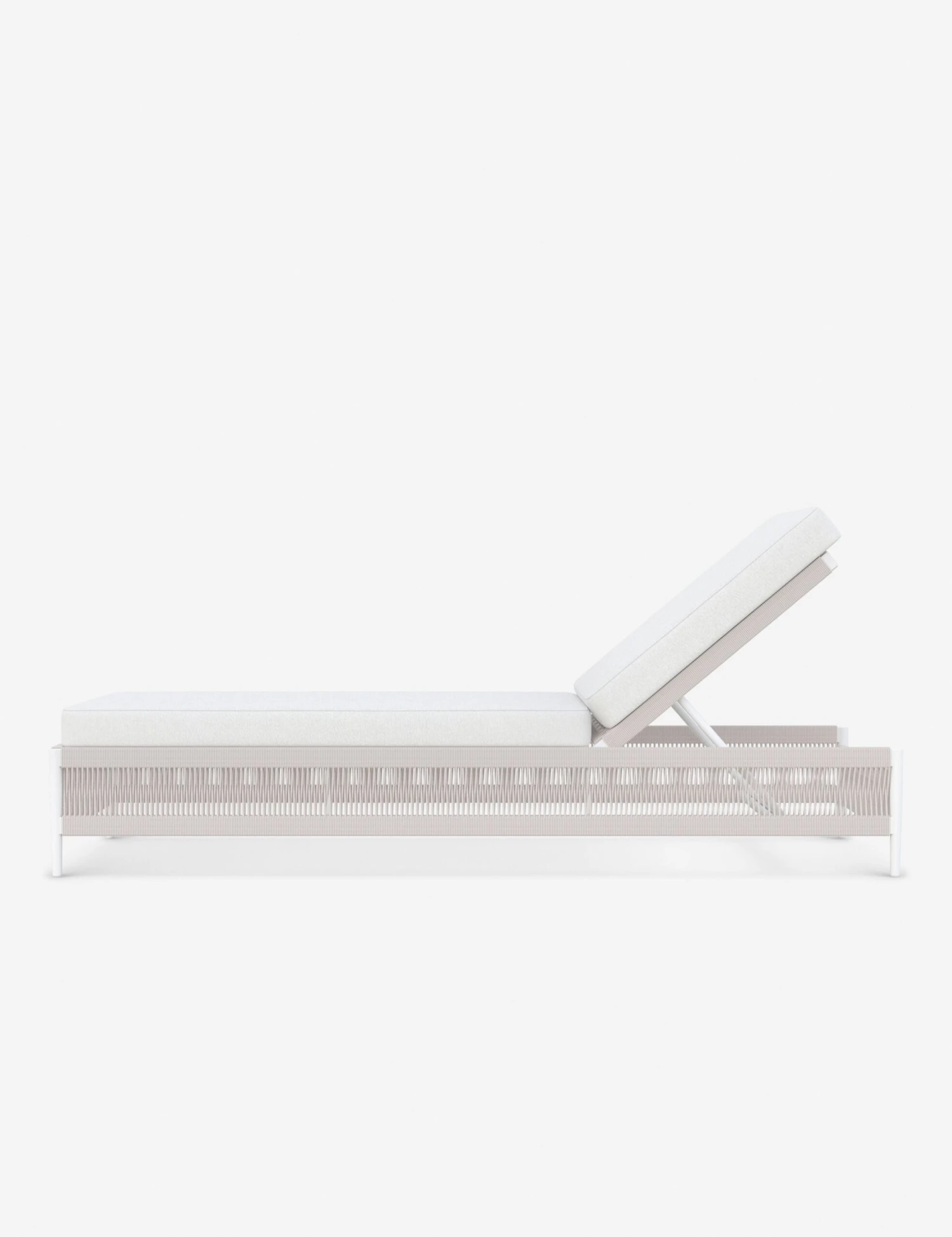 The Esparza chaise brings refined design to a livable indoor-outdoor style. The slim but sturdy aluminum frame is finished in matte white with a linear all-weather rope weave augmenting its clean, spare lines. Performance cushions and an adjustable back add a practical touch to an outdoor lounger that blends comfort with elegance.