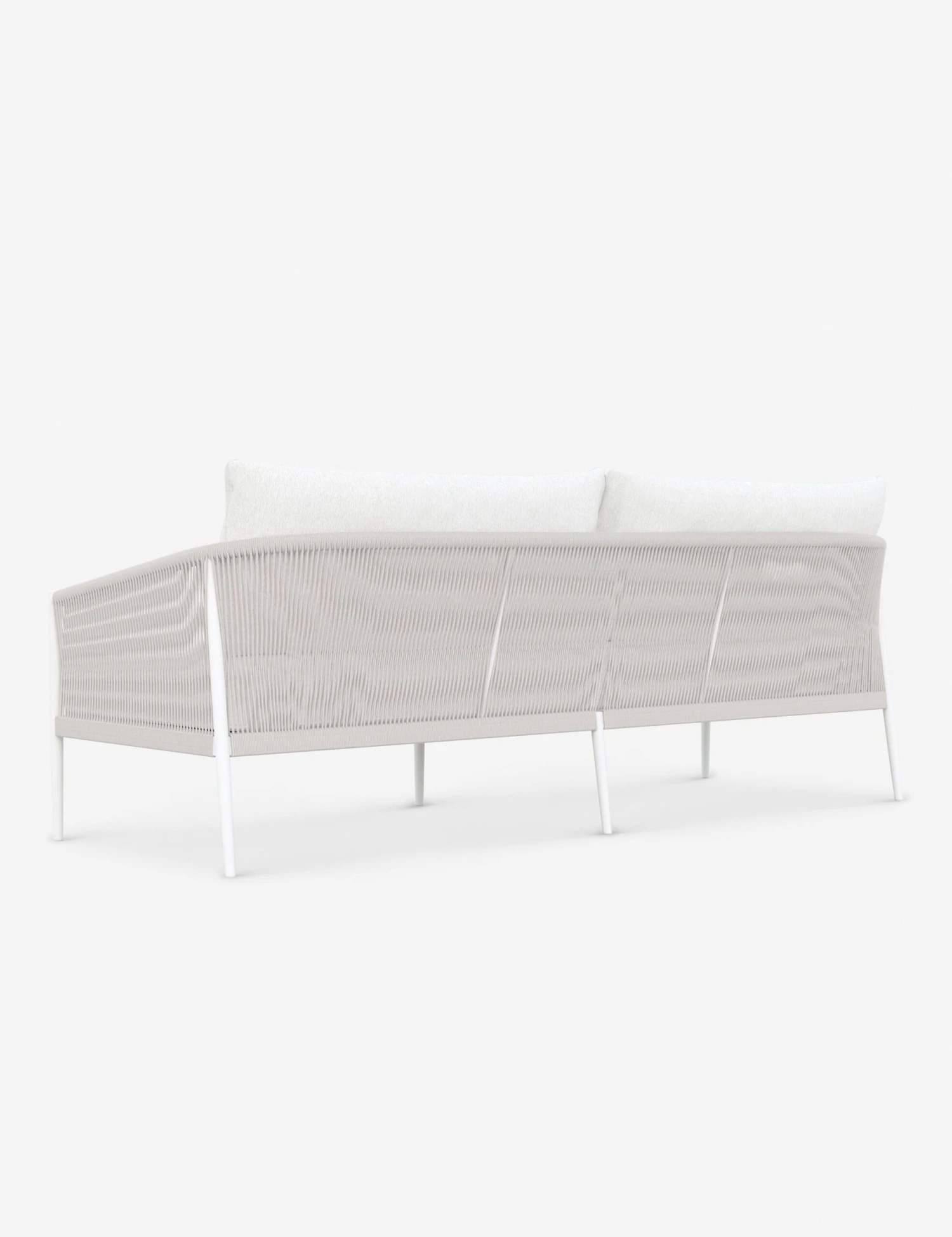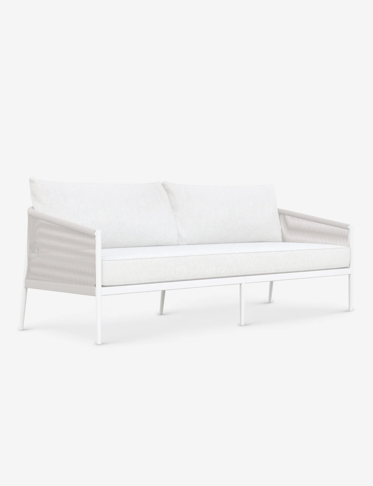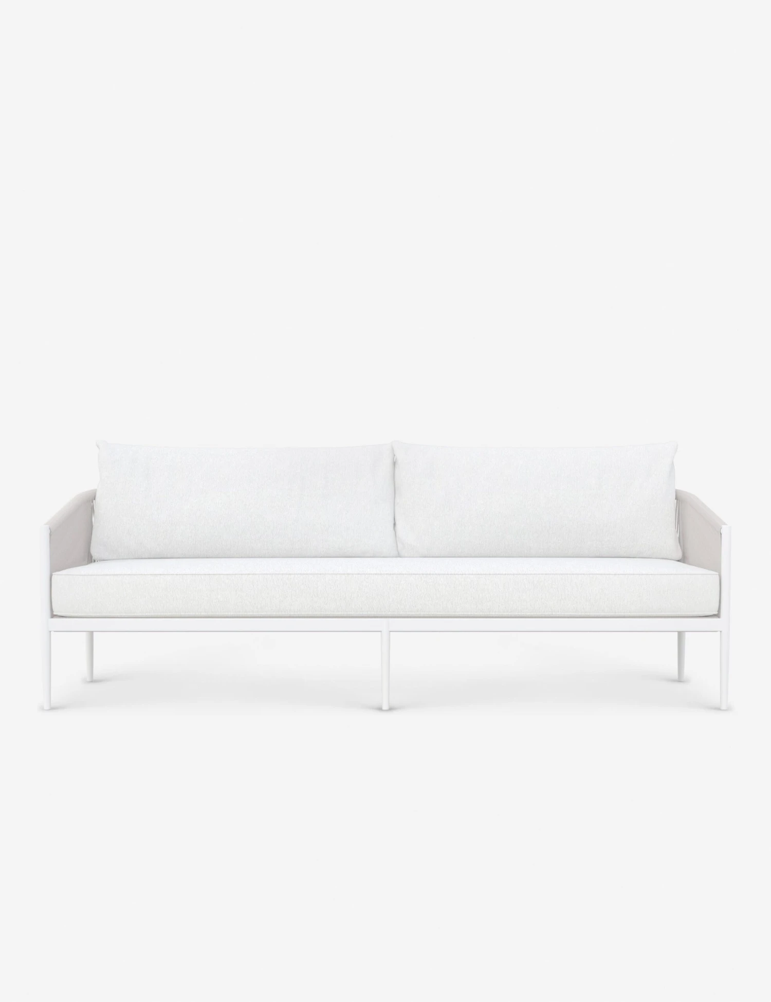 The Esparza sofa brings refined design to a livable indoor-outdoor style. The slim but sturdy aluminum frame is finished in matte white with a linear all-weather rope weave augmenting its clean, spare lines. With its plush performance cushions, this indoor/outdoor sofa offers comfort and elegance for three in your sunroom or patio.
