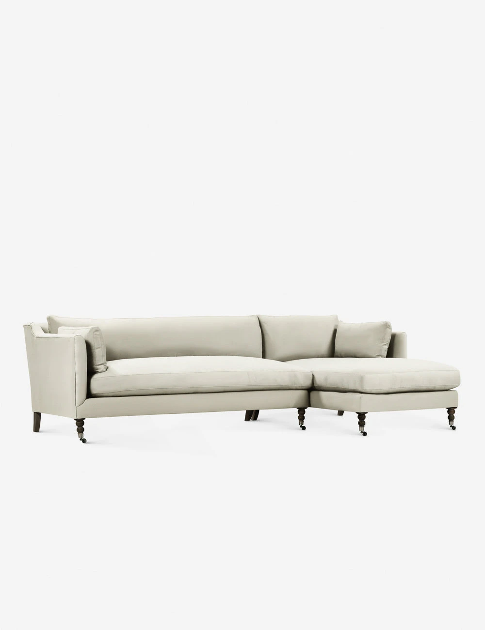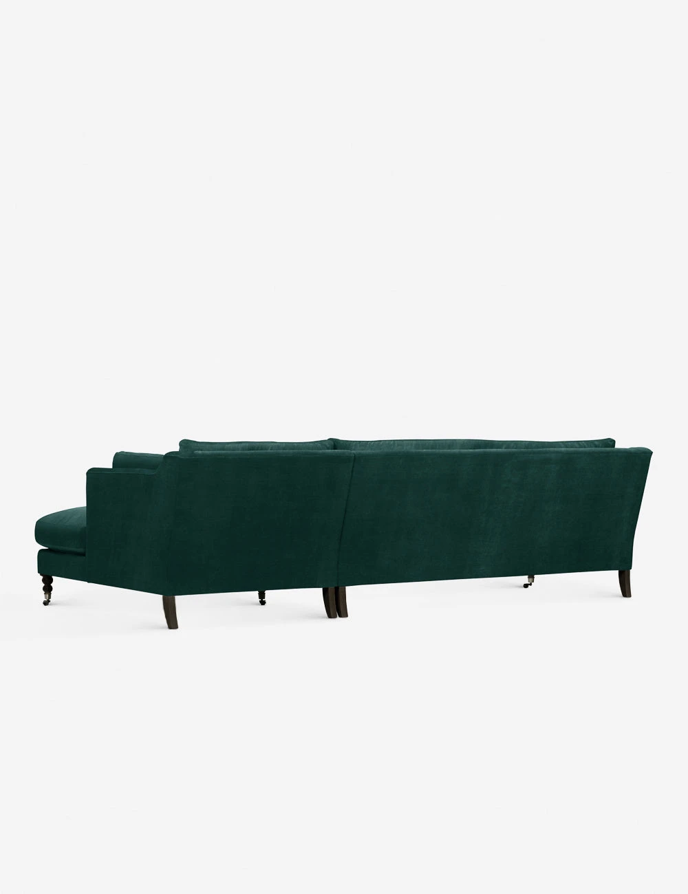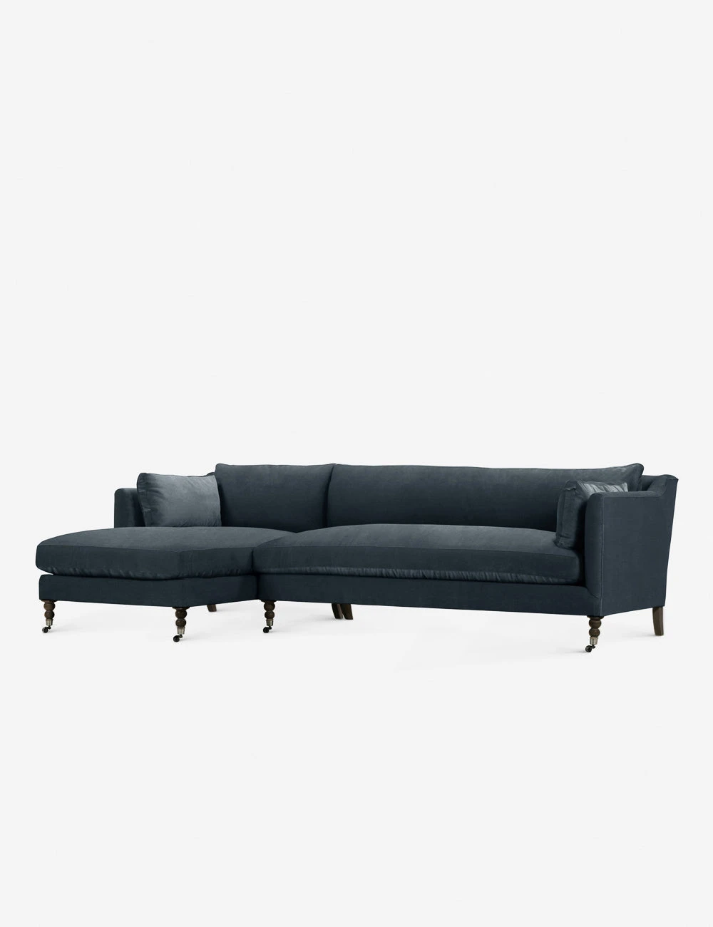 Add a touch of vintage flair to your living room or office with the Fabienne Sectional Sofa. Antique styling pairs velvet upholstery with traditional curved legs in the back and ornate, turned legs in the front. This sectional with a chaise is finished with small front wheels to ease movement.