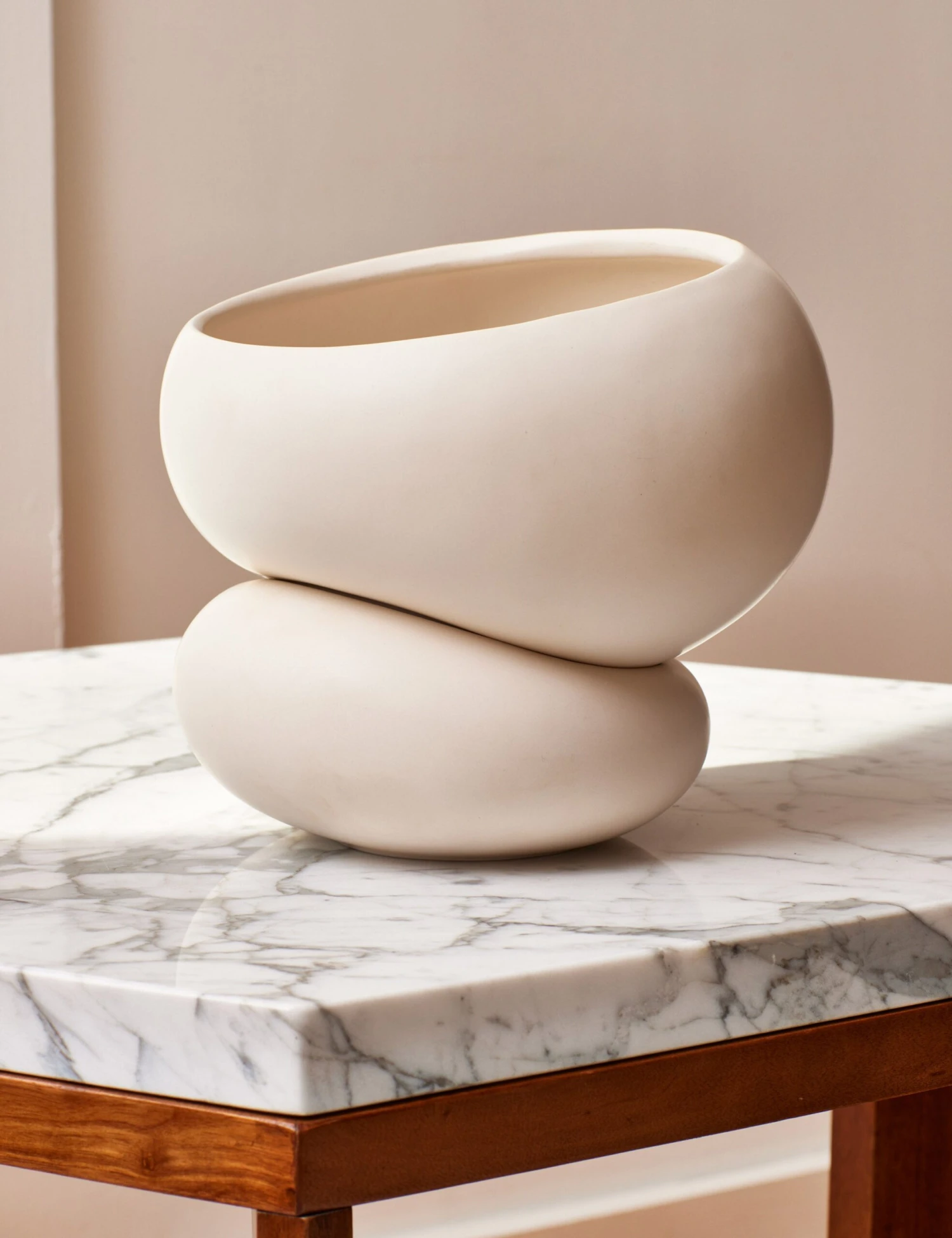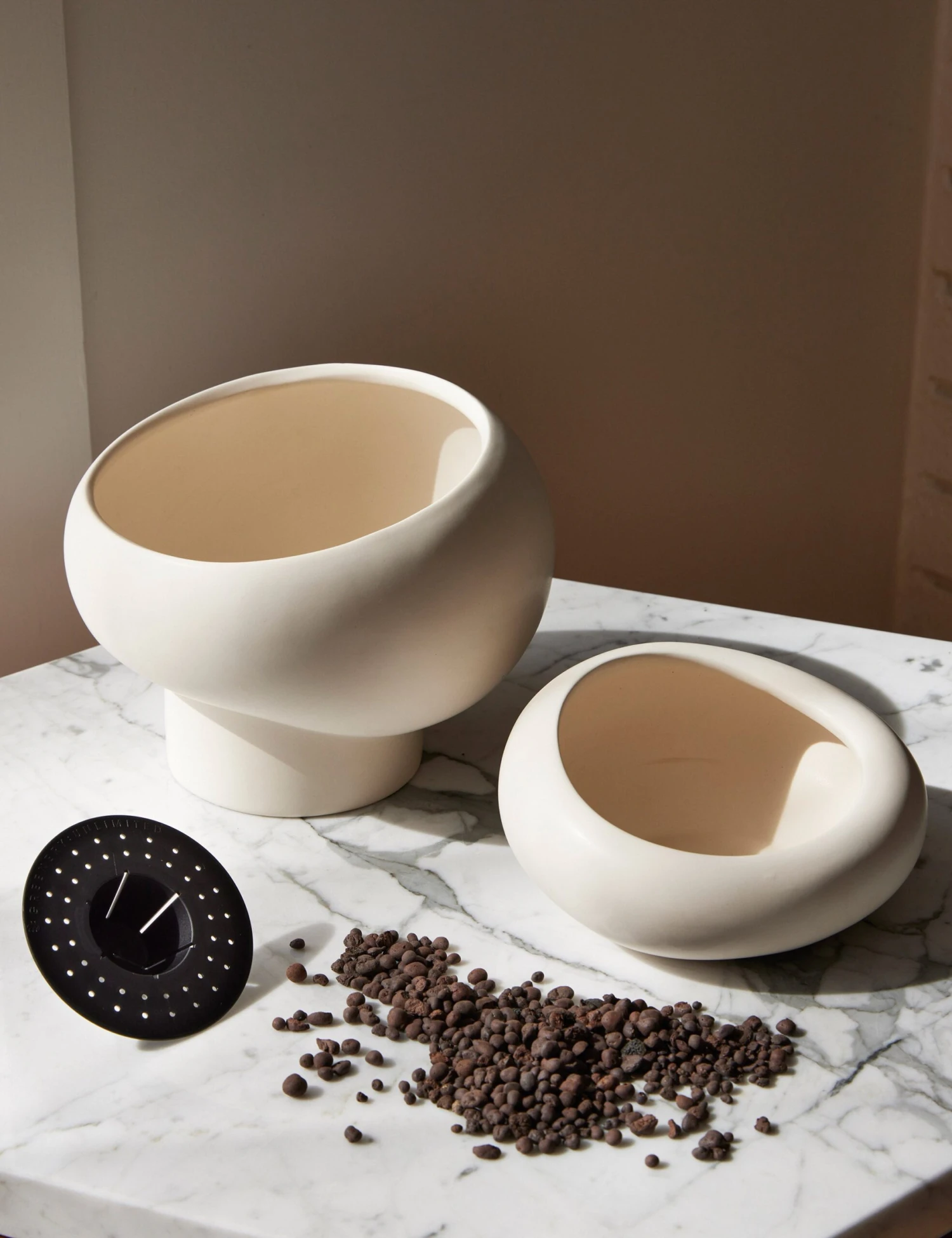 The Fondra planter brings a sculptural touch to any plant collection. Made in collaboration with Light + Ladder, its fluid form is modeled and handworked to simulate soft masses colliding. With a self-watering design, this tabletop planter can add texture and interest for easy-care greenery on your kitchen counter, desktop, or any space in need of fresh life.