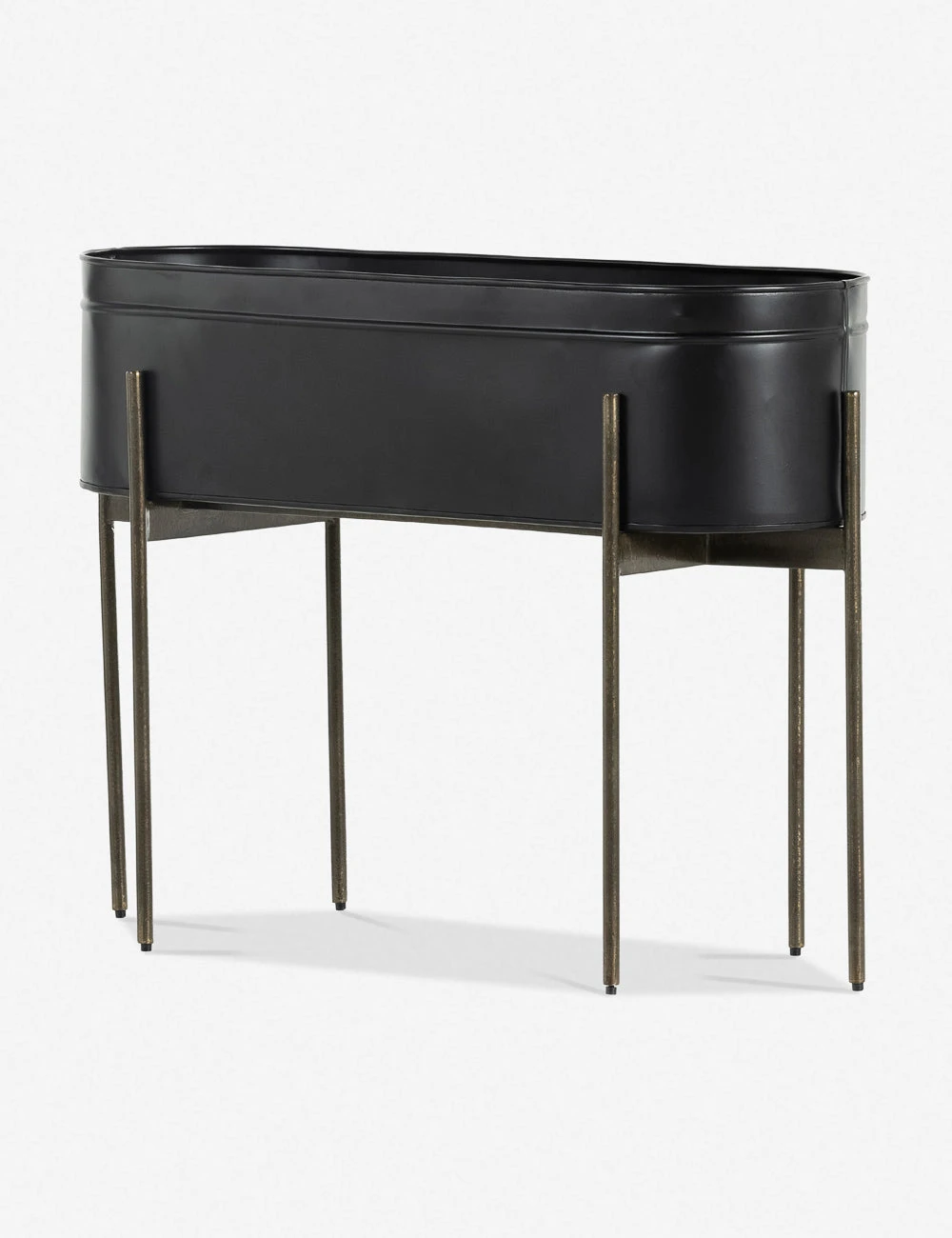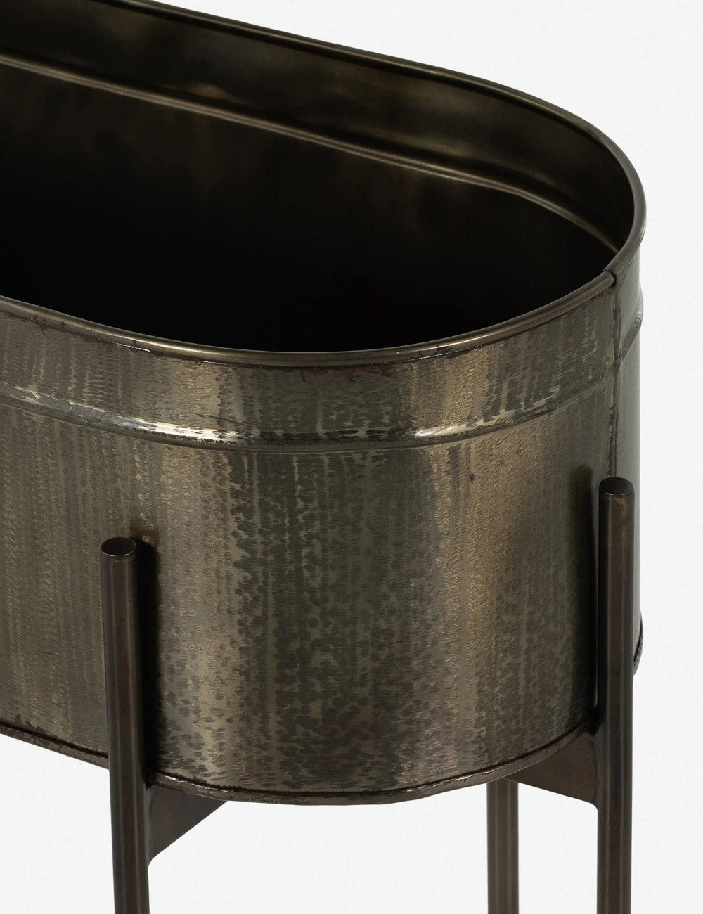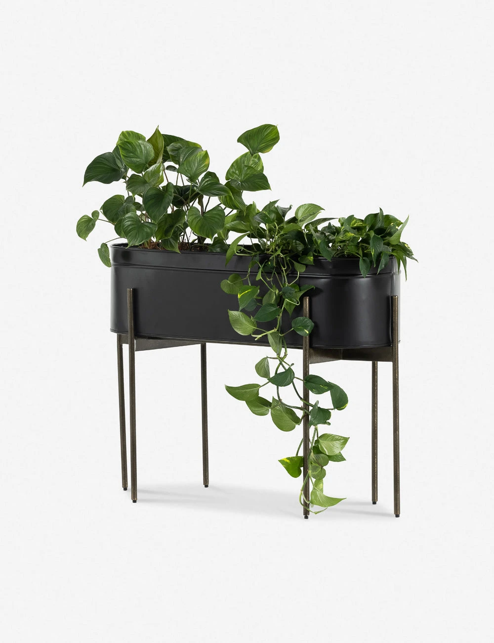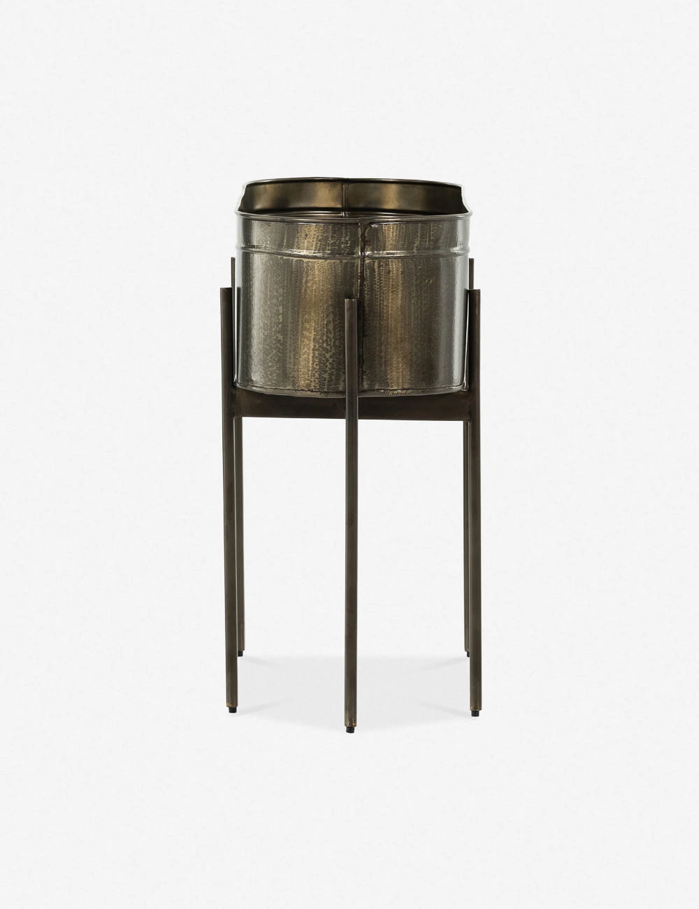 Add a sleek feel to your green decor with this iron planter. The tub-shaped planter sits on a cradle base featuring slim iron legs for an airy profile that creates a rustic yet delicate tone for your entryway, beside your sofa, or indoor garden.