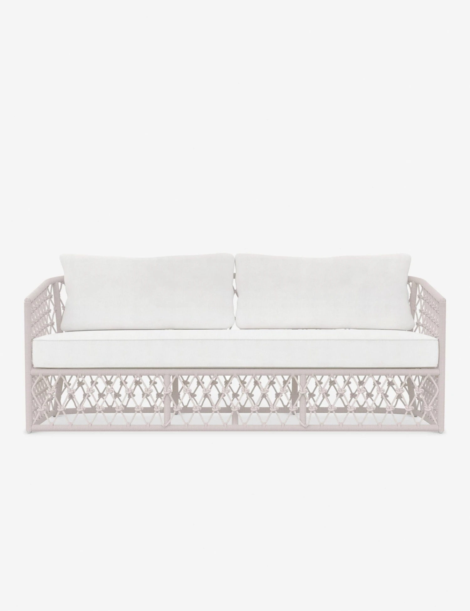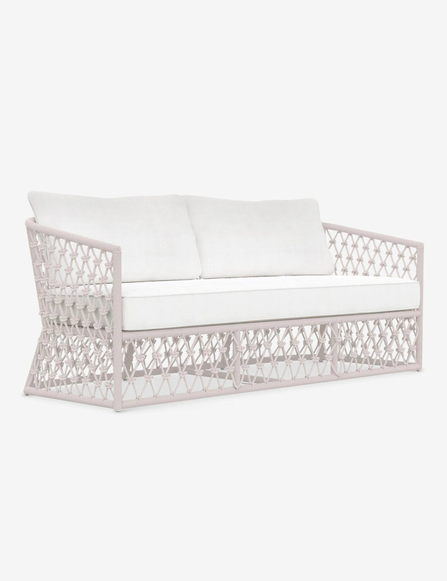 The Gibbs indoor/outdoor sofa balances practical comfort with breezy sophistication. From the light but sturdy aluminum underneath to the all-weather rope and removable, performance fabric cushions, every element is designed to bring effortless elegance to indoor-outdoor living. This sofa features soft curves meeting clean lines in an airy, rope-wrapped frame with hand-knotted detailing for a distinctive touch.