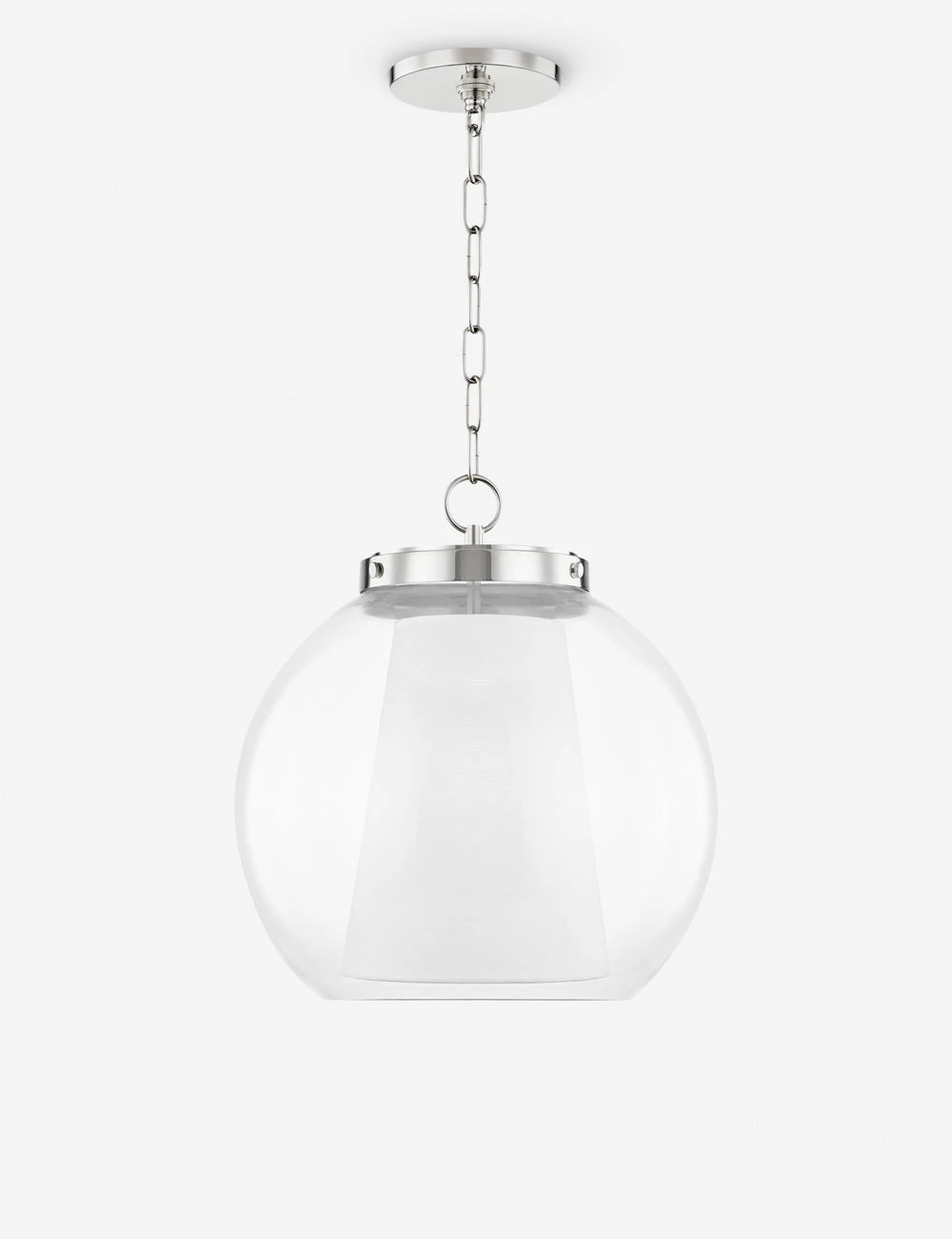 Polish your lighting design with a refined touch of this double-shaded hanging light. The Harrell pendant features an open glass orb around a tapered white shade neatly suspended from a chain. Endlessly versatile and instantly elevating, this design is ready-made stunner.