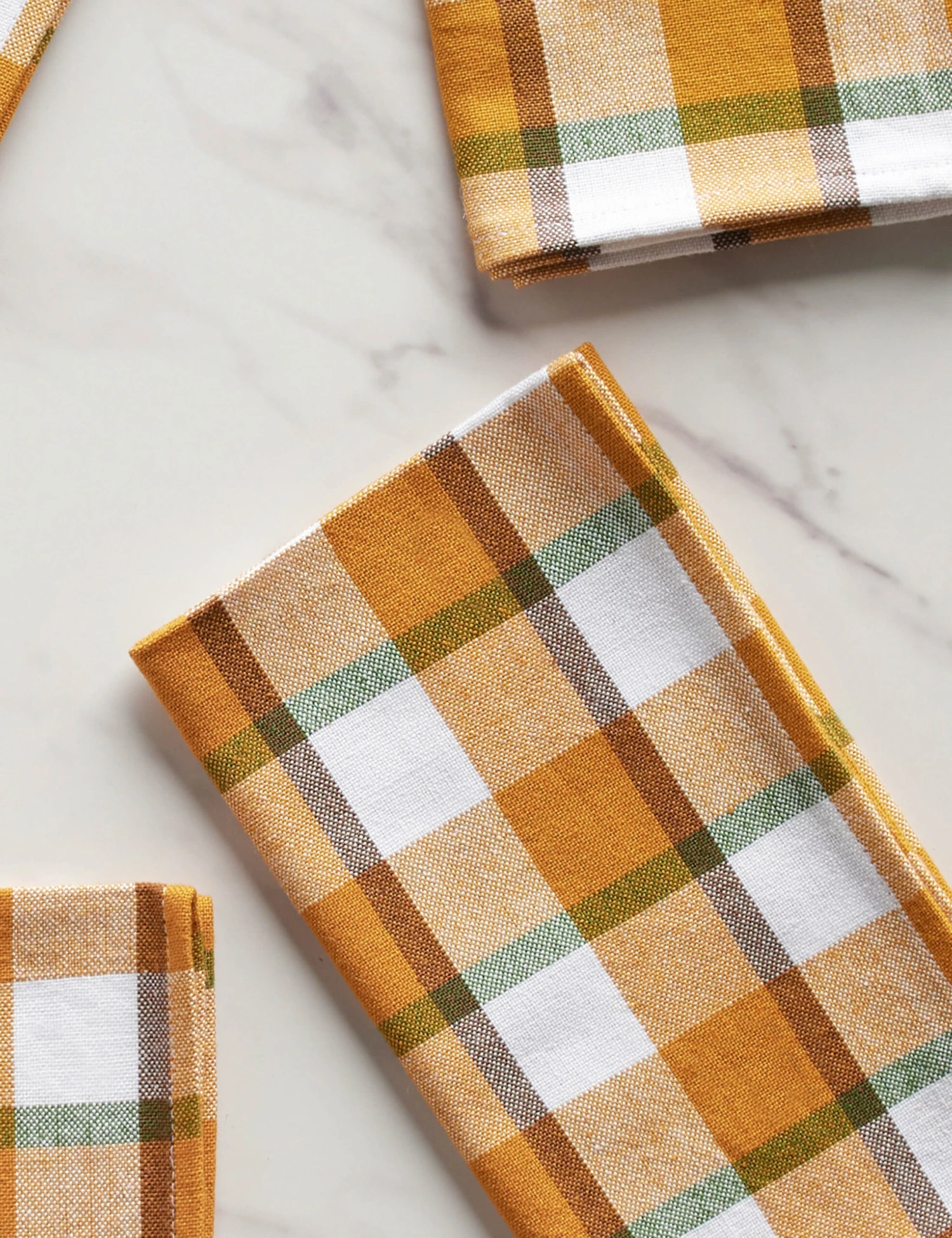 Heather Taylor Home designs linens that fold into and elevate every gathered occasion. Handwoven with soft, absorbent cotton, this set of napkins features a timeless plaid pattern for rustic warmth at your table.