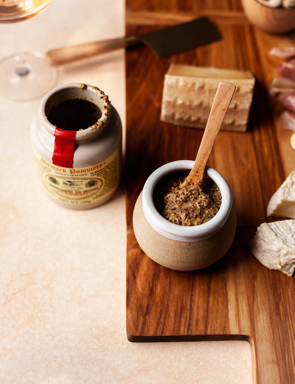 Vermont-based studio Farmhouse Pottery creates handcrafted accents and table essentials with rustic charm. Whether inspiring an afternoon tea or adding organic appeal to a weekend brunch, this jam pot elevates your counter or table. The stoneware pot features a glazed lip for a refined touch and comes with a hand carved wooden spoon. Serve and store jams, marmalades, sugar, or mixed nuts.