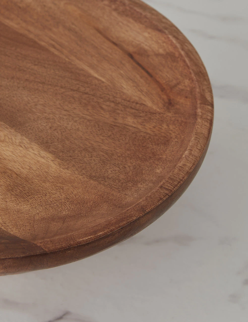 This mango wood cake stand features a beautiful grain with hand-carved detailing, all highlighted by a rich walnut finish. Serve up delectable bites or style on your countertop for a fresh addition with storage appeal.