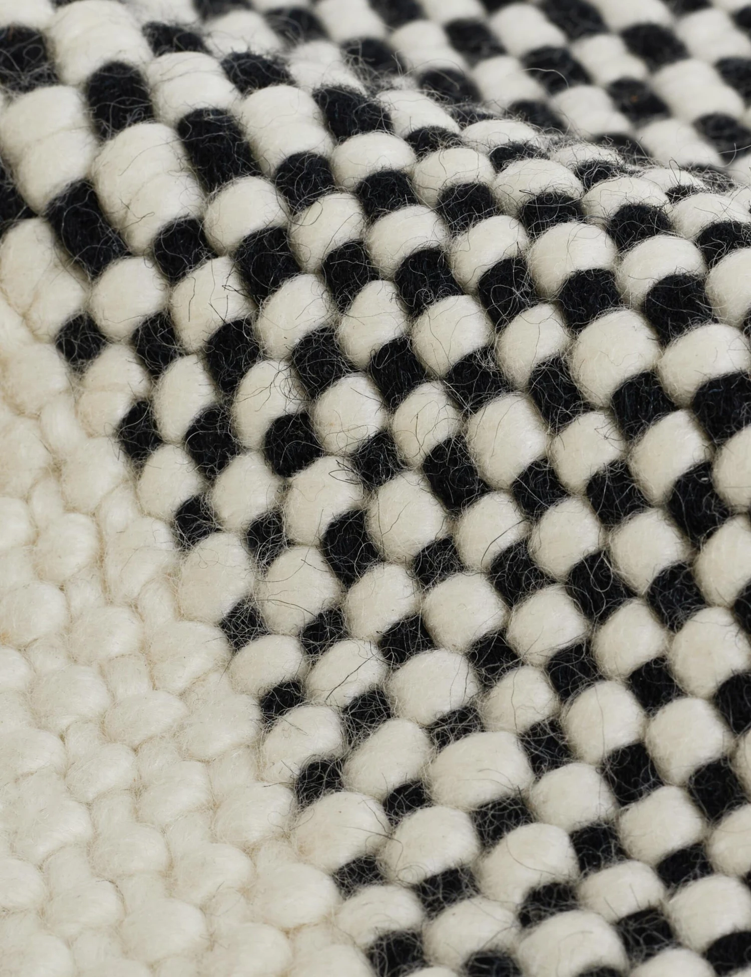 Our Joelle Rug is a handwoven flatweave that adds clean-lined style and polish to your living spaces. An asymmetrical fringe detail creates a subtle contrast in pattern to its two-tone small checkerboard design, layering well with industrial or minimalist styles.