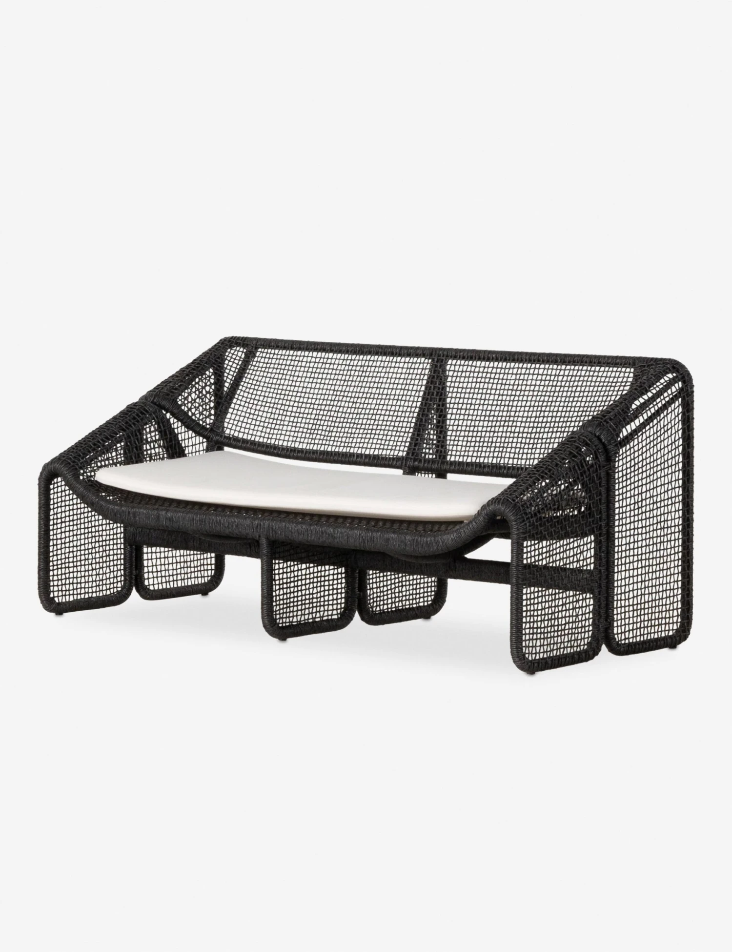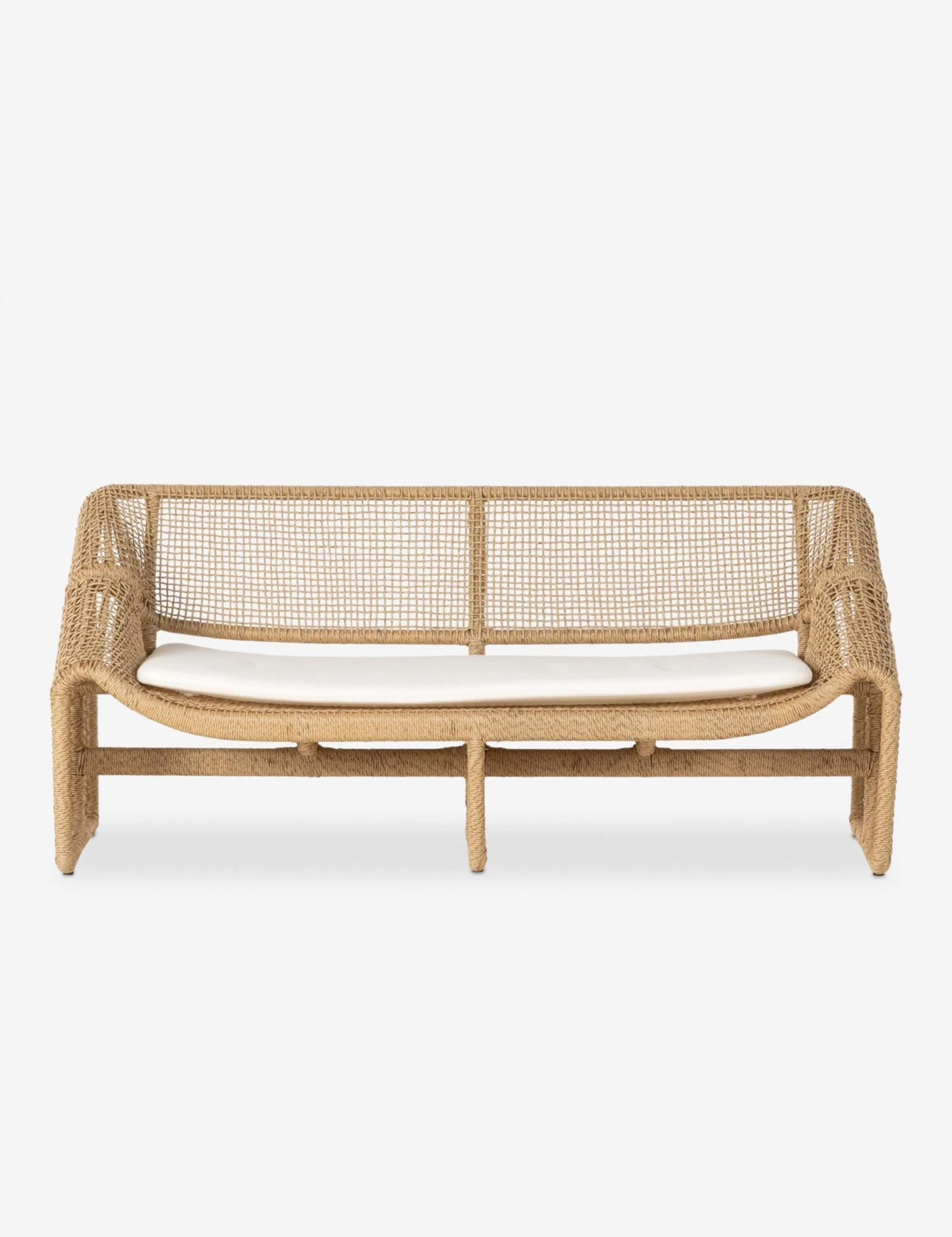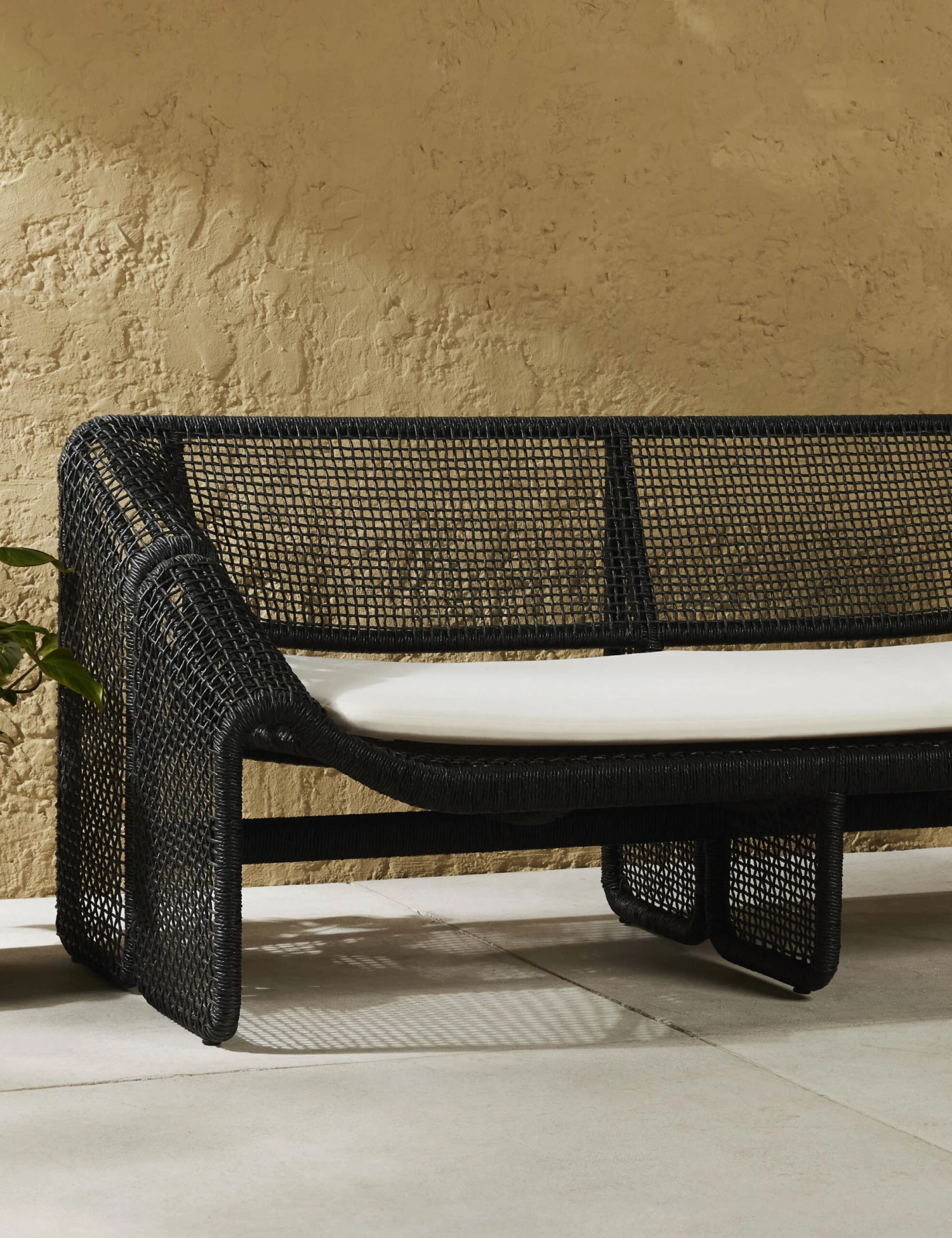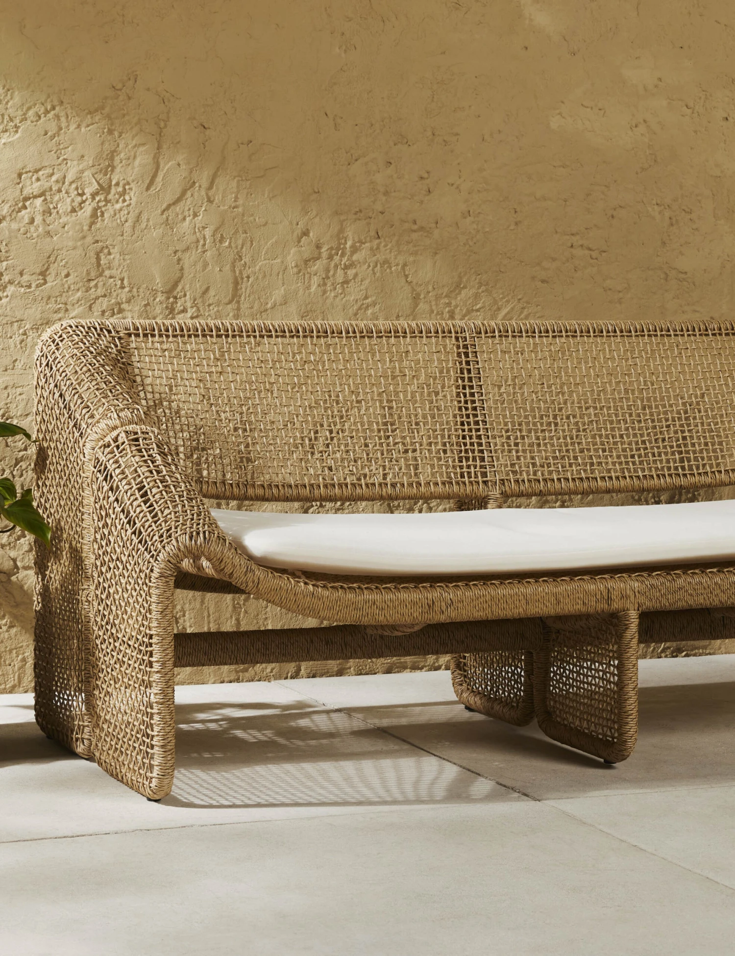 Style this indoor/outdoor sofa for statement appeal in your fresh-air lounge or summer hangout. This small sofa offers a sculptural silhouette with a contoured seat in an airy, woven design. The hyacinth-inspired frame is crafted with all-weather wicker and topped with a performance upholstered cushion for versatile style from a sunlit study to your garden lounge.
