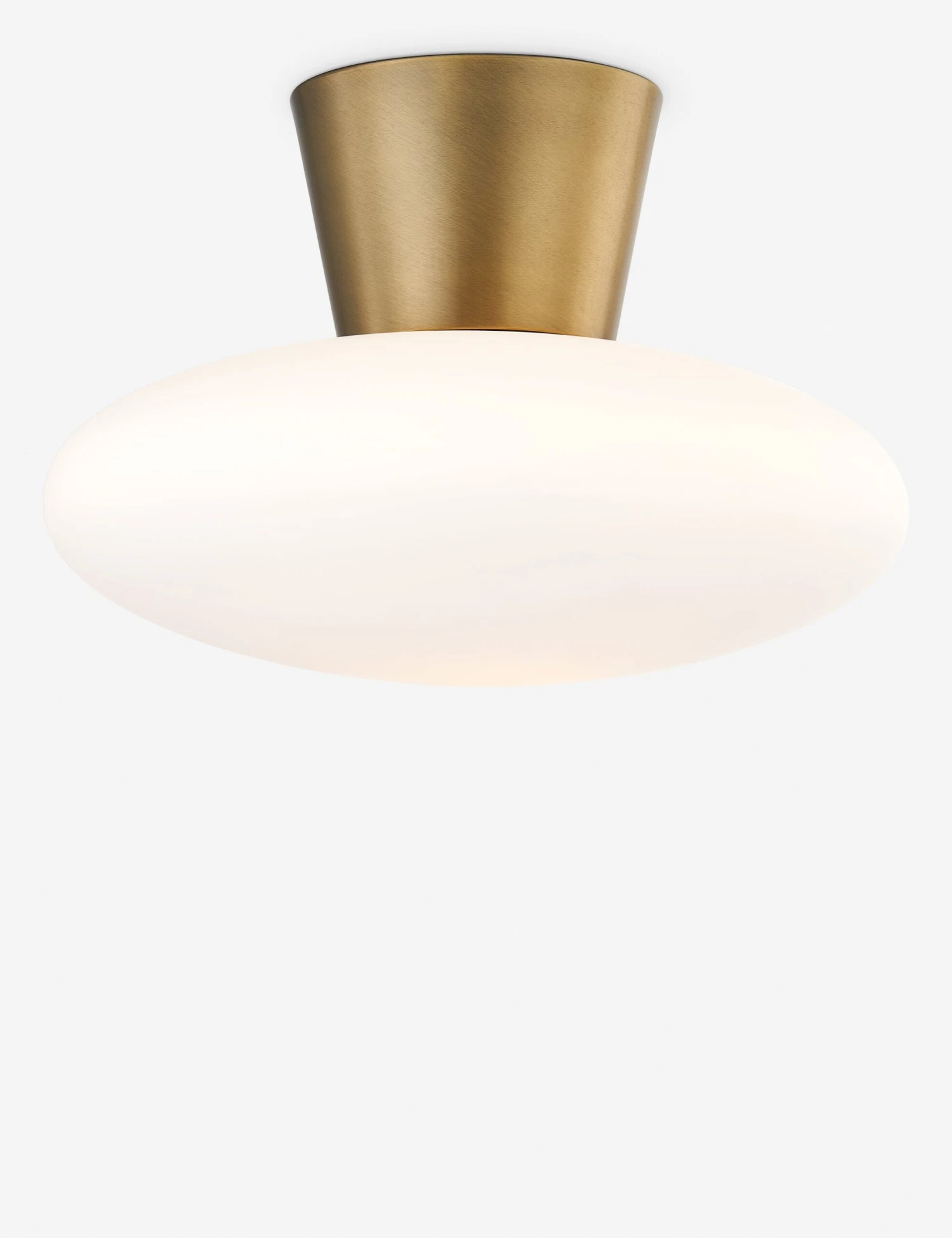 The Joyce flush mount is a subtle stunner, offering a soft elegance with its minimalist design. The patina brass-finished collar adds a polished touch to the opal glass shade for an attractive overhead light you can style to any look for seamless appeal. This flush mount is the perfect way to bring a stylish edge to a small-space design.