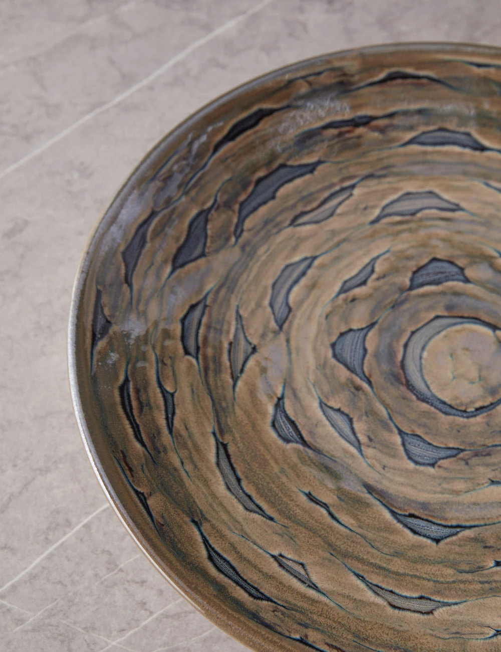 Layer depth and texture onto any tabletop or counter with this unique ceramic platter. The reactive glaze offers a bold touch of style with natural appeal—perfect for setting off a display of fruit or small decor.