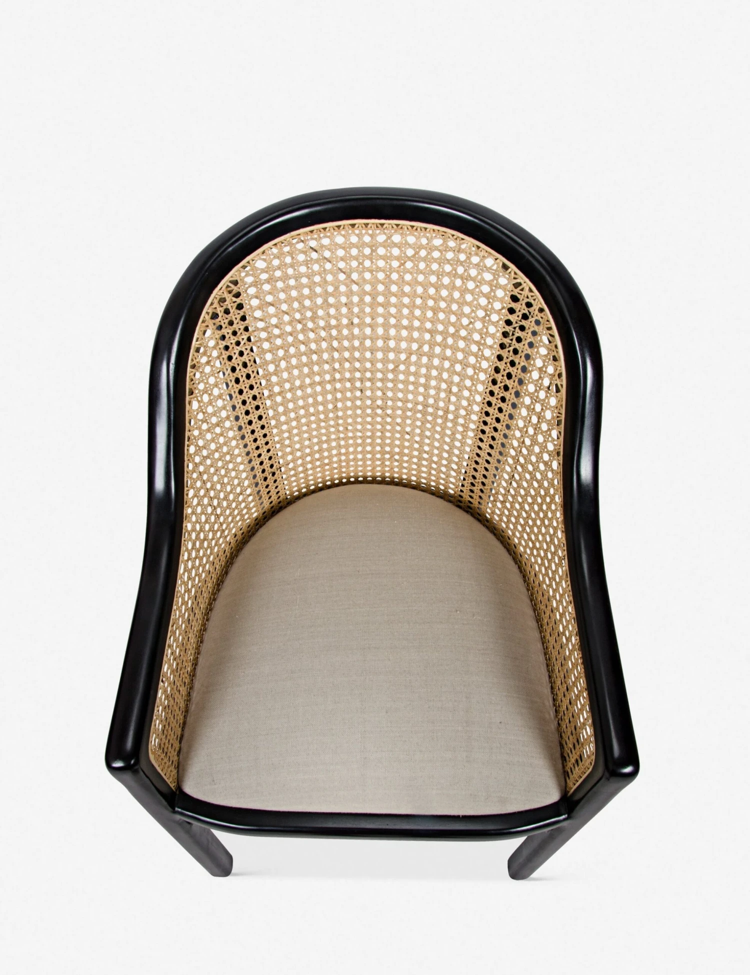 Classic design meets contemporary style with the Loreana chair’s hand-rubbed black frame and natural rattan-woven detailing. Angled back legs give it a more modern feel.