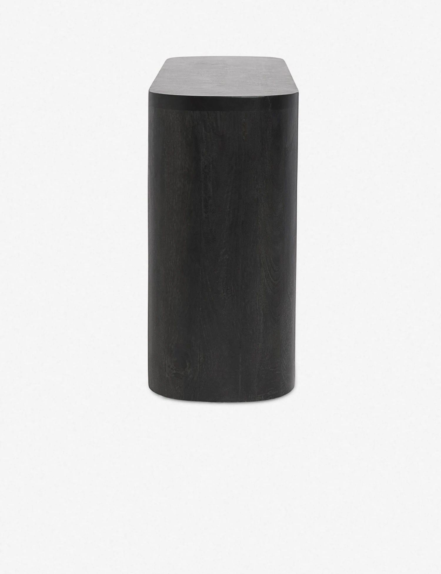 Balance your modern decor with the Luna Console Table. In a light or dark finish, the detail-rich grain of the wood shines through, giving its soft sculptural form natural texture appeal. This refined design offers a versatile fit as a sofa or entryway table—try pairing with a geometric rug for an added touch of impact.
