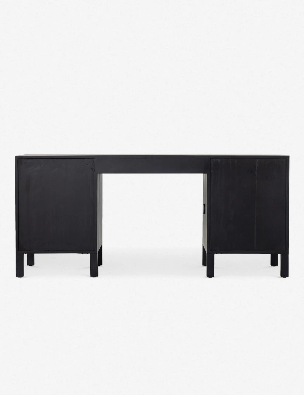 Simply inspired, this solid dry-washed poplar desk combines clean lines with dovetail joints in a Shaker-inspired design. This desk is finished in a light neutral tone and fitted with iron and leather hardware in a versatile, understated style. The fully finished back lets you float this desk anywhere in the room.