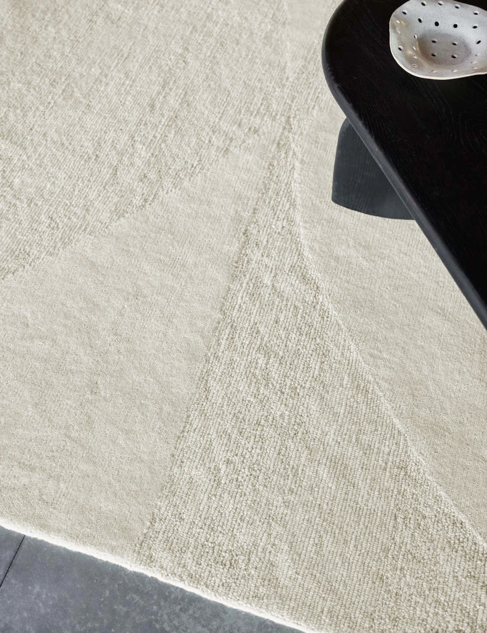 A subtle yet vibrant visual texture runs through this hand-knotted floor rug, setting off a crisp, tone-on-tone geometric design. We love the soft, natural touch this wool blend rug provides below your feet while offering up a polished bedroom or living space.