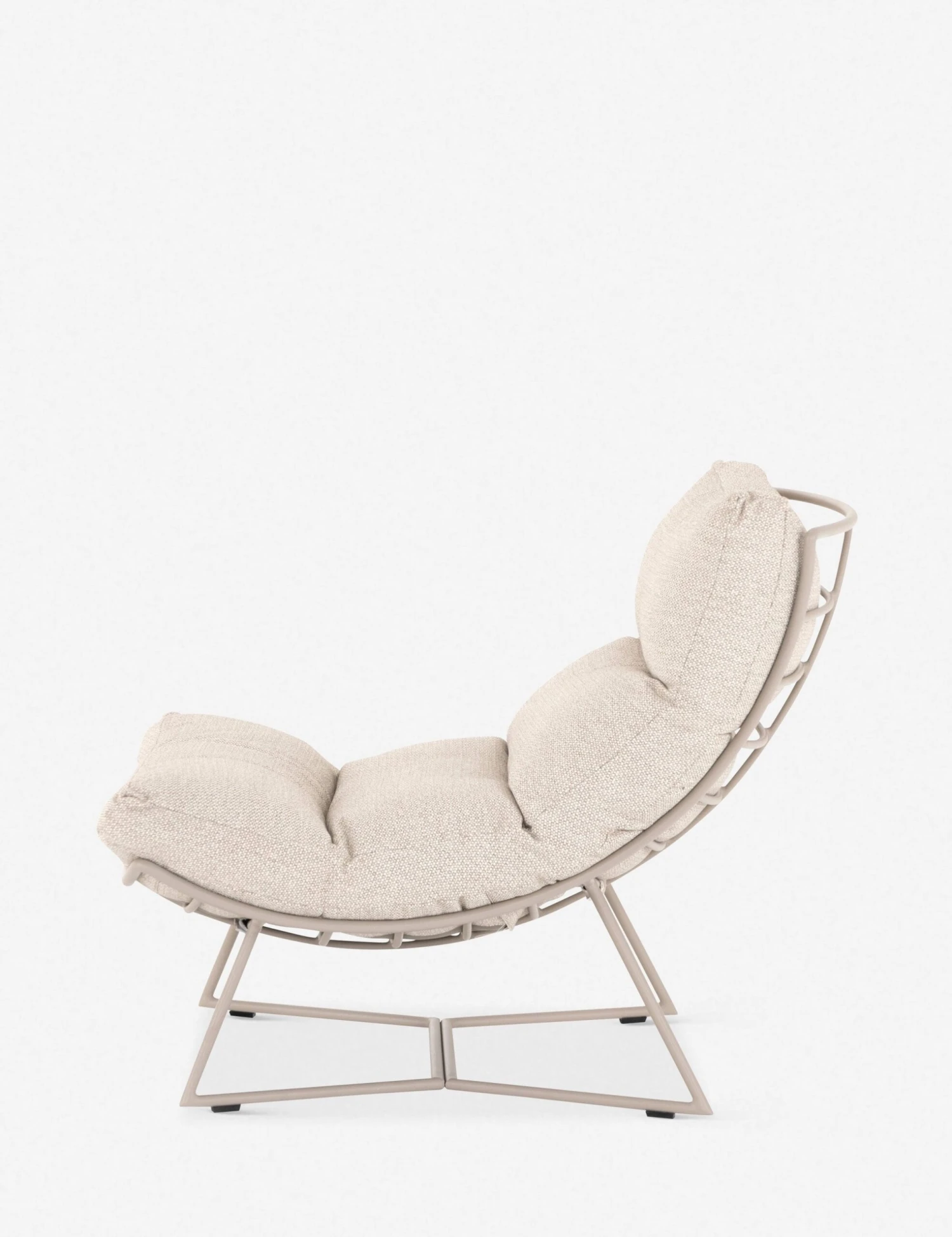 A swooping reclined seat is complemented with a billowy seat cushion and gray-finished iron frame to make for a refined accent chair. Upholstered with a durable, fade-resistant fabric in light sand, we love the idea of using this occasional chair to relax poolside, on your terrace, or even in your sunroom.