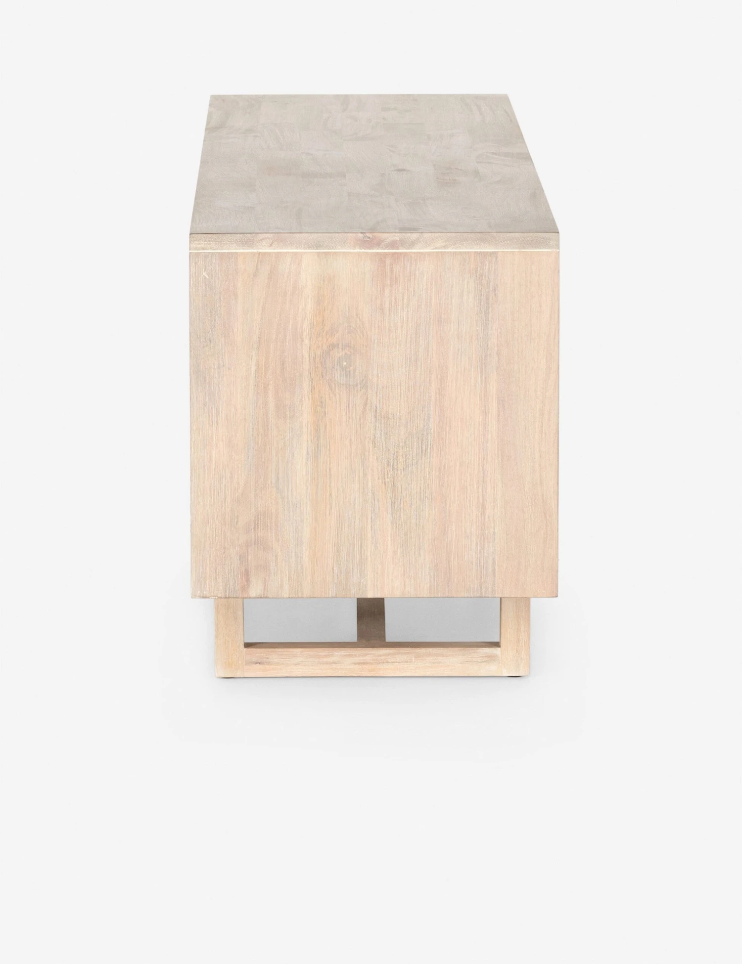 A timeless, clean-lined silhouette is elevated by detail-rich wood grain and woven cane door fronts to create this Margot Media Console. Crafted from natural mango wood, its whitewashed finish complements the three cane doors for a tonal storage piece. Three open shelves offer even more storage.