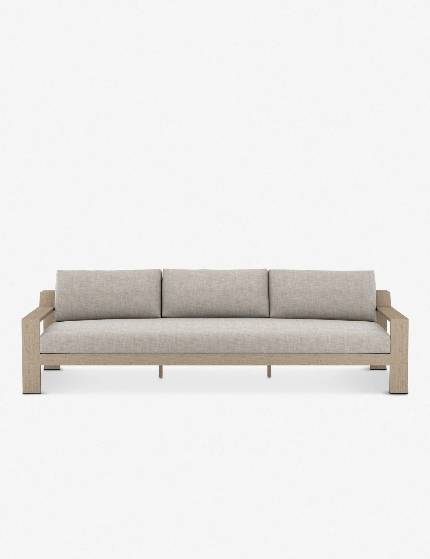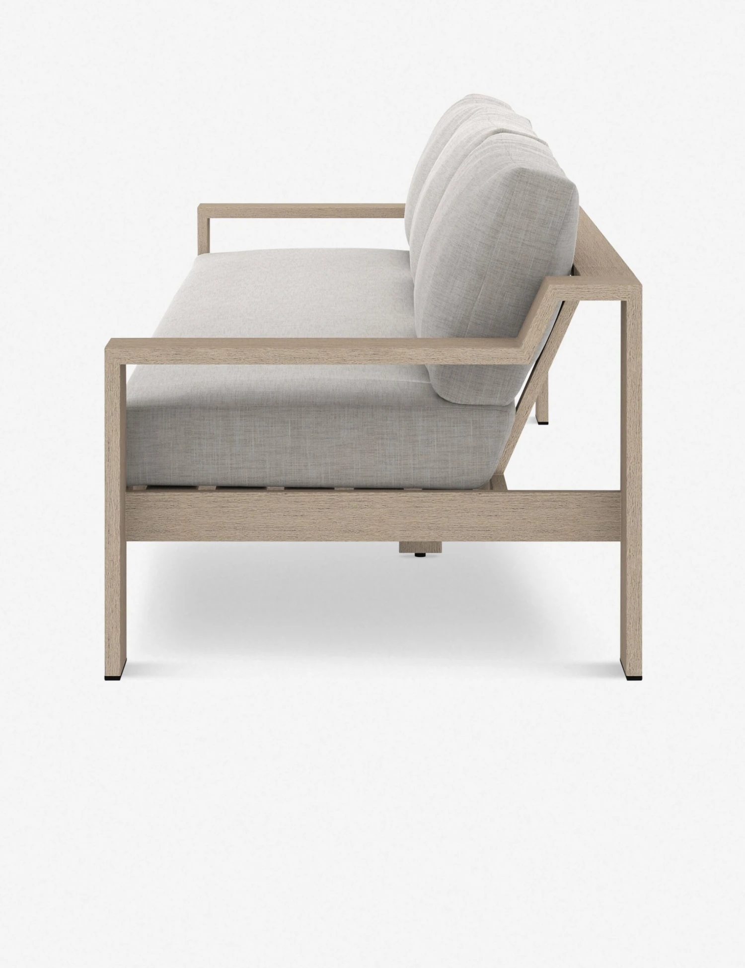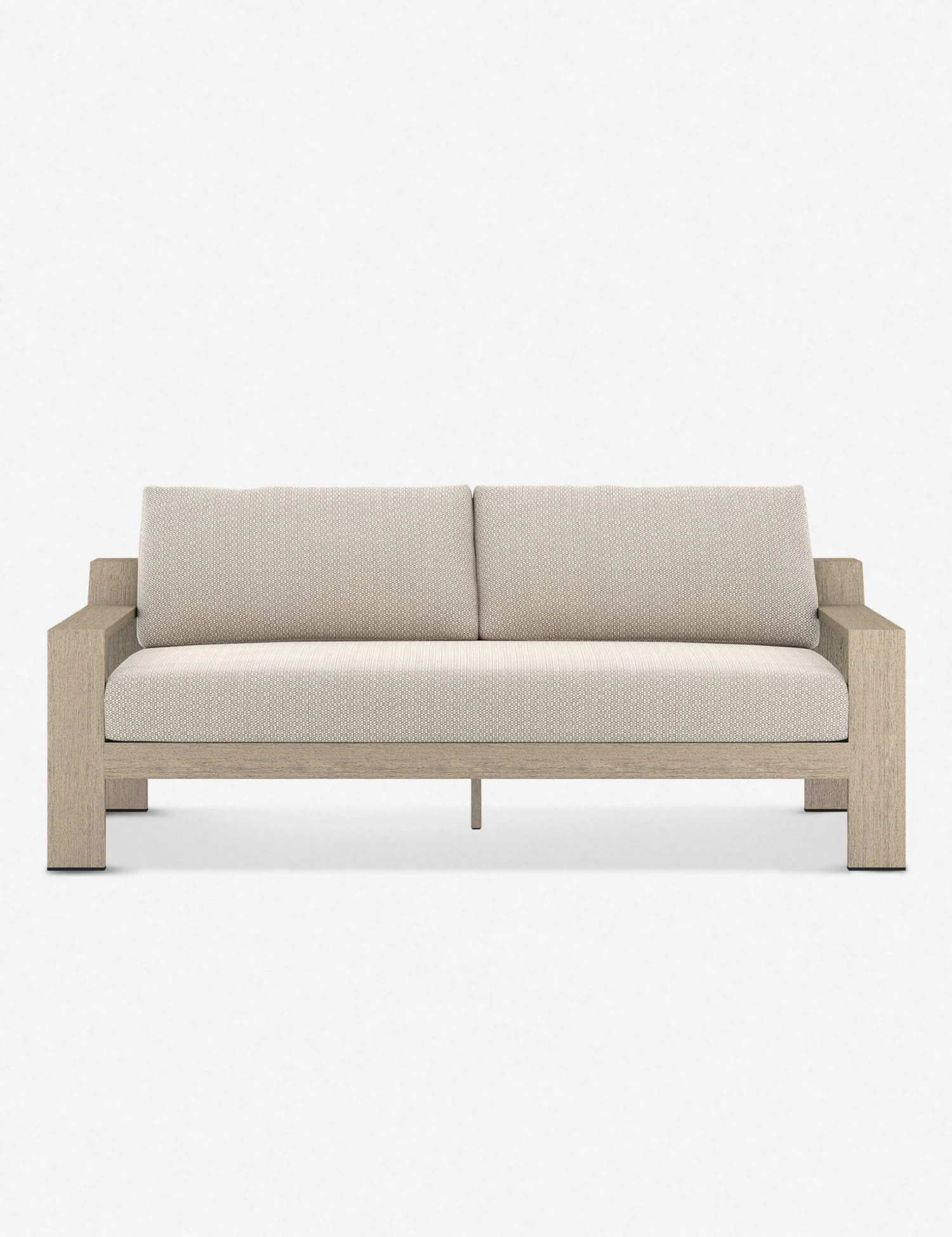 The Mona Collection features architectural lines and teak wood construction to cast a clean, stylish silhouette for outdoor bliss. This versatile sofa has a long frame and plush, performance-upholstered seat, perfect for entertaining or laying out for some fresh air. Whether looking to anchor an outdoor lounge or just in search of extra seating for your garden or lawn, this couch is the perfect touch.