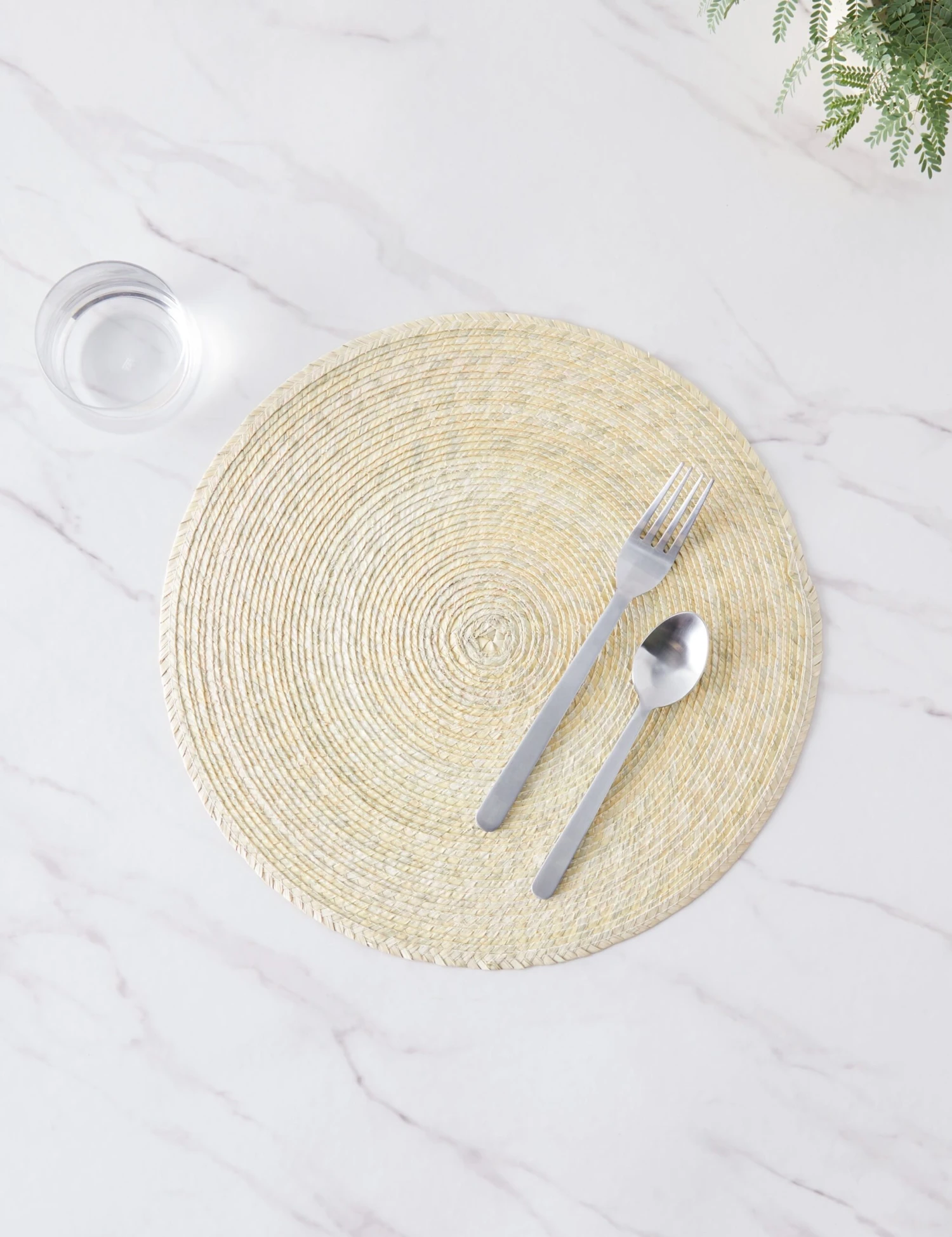 Layer a soft organic appeal into your table with the palm placement from Minna. Each piece is hand-braided and then sewn into shape to offer a naturally grounded element filled with artisanal character. Style in a set for a versatile touch at your dinner table or ground an entryway console or bookshelf vignette.