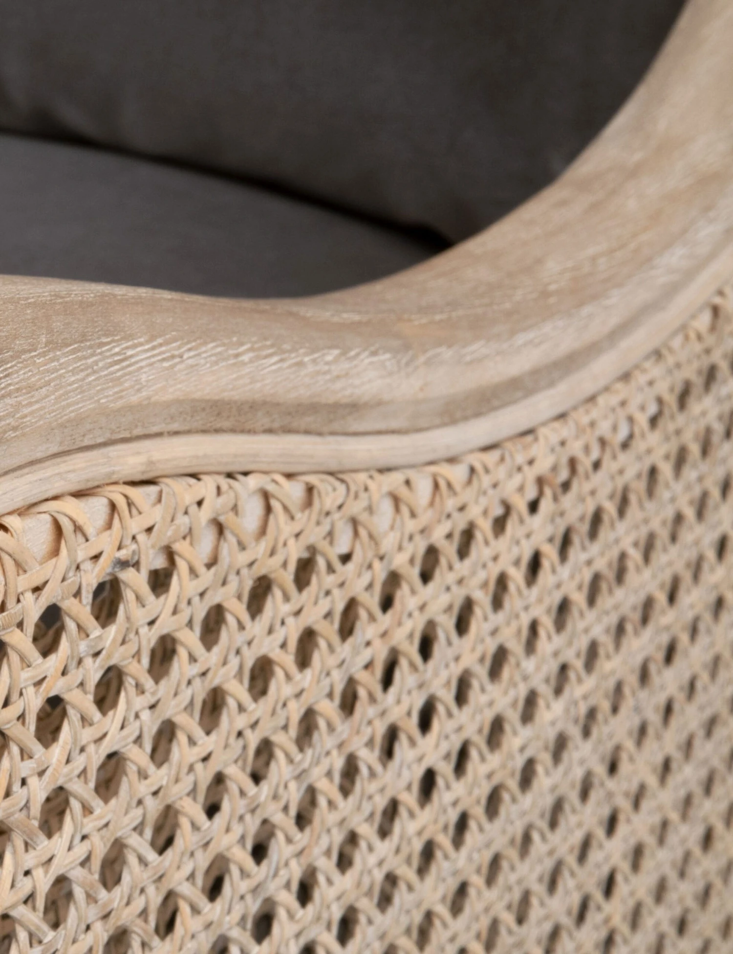 There’s a distinct refined appeal to this accent chair, with its high back frame and rattan detailing. Crafted from a solid birch frame, the mixed wooden and woven materials pair with natural-hued upholstery for a tonal look. Sit this decorative chair in a reading nook or in a home office.