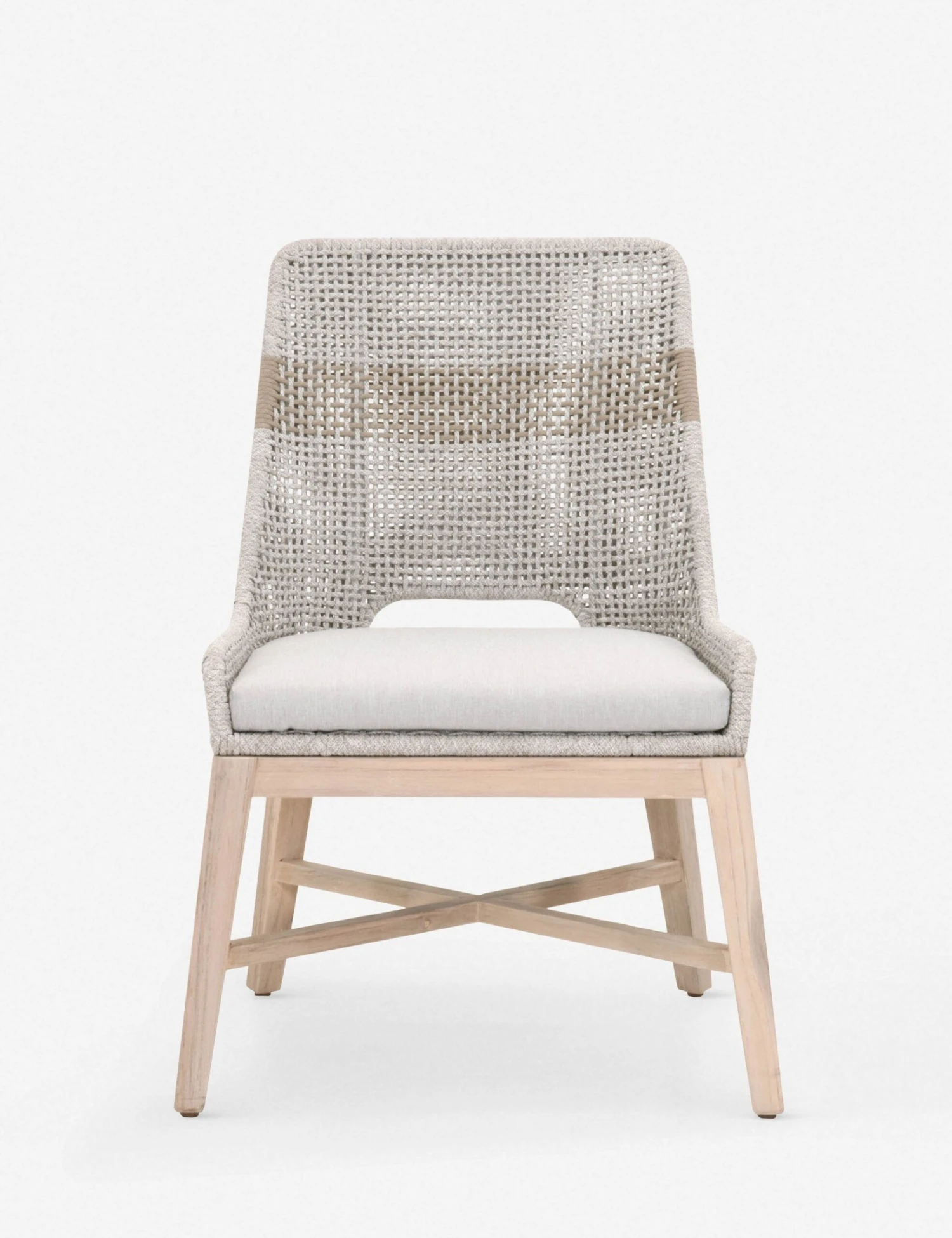 Designed with a low-profile back and a cheeky cutout, this dining chair’s tapered teak legs and removable cushion are ready for both indoor and outdoor styling. We love how the woven rope detailing adds natural textures to the look.