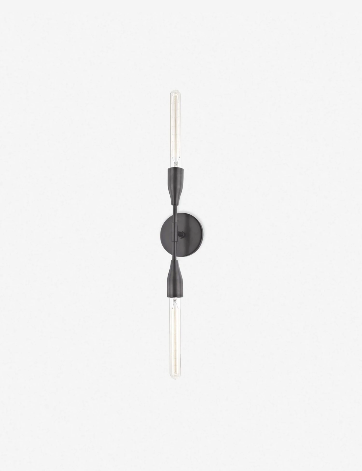 An ultra-modern look we love, this wall-mounted sconce features two tubular bulbs – style them horizontally or vertically to fit your space!