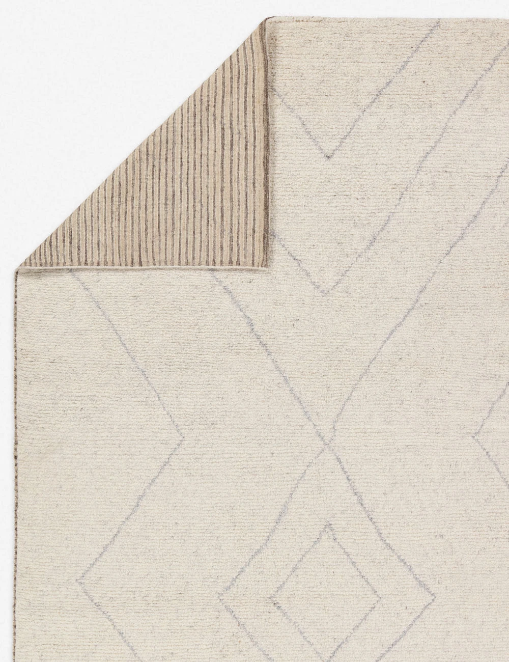 Rich in detail and plush underfoot, this neutral-toned area rug is inspired by Moroccan shags. It features a slight sheen and luxe hand-knotted construction of wool and viscose, and a trellis pattern gives this rug an organic feel.
