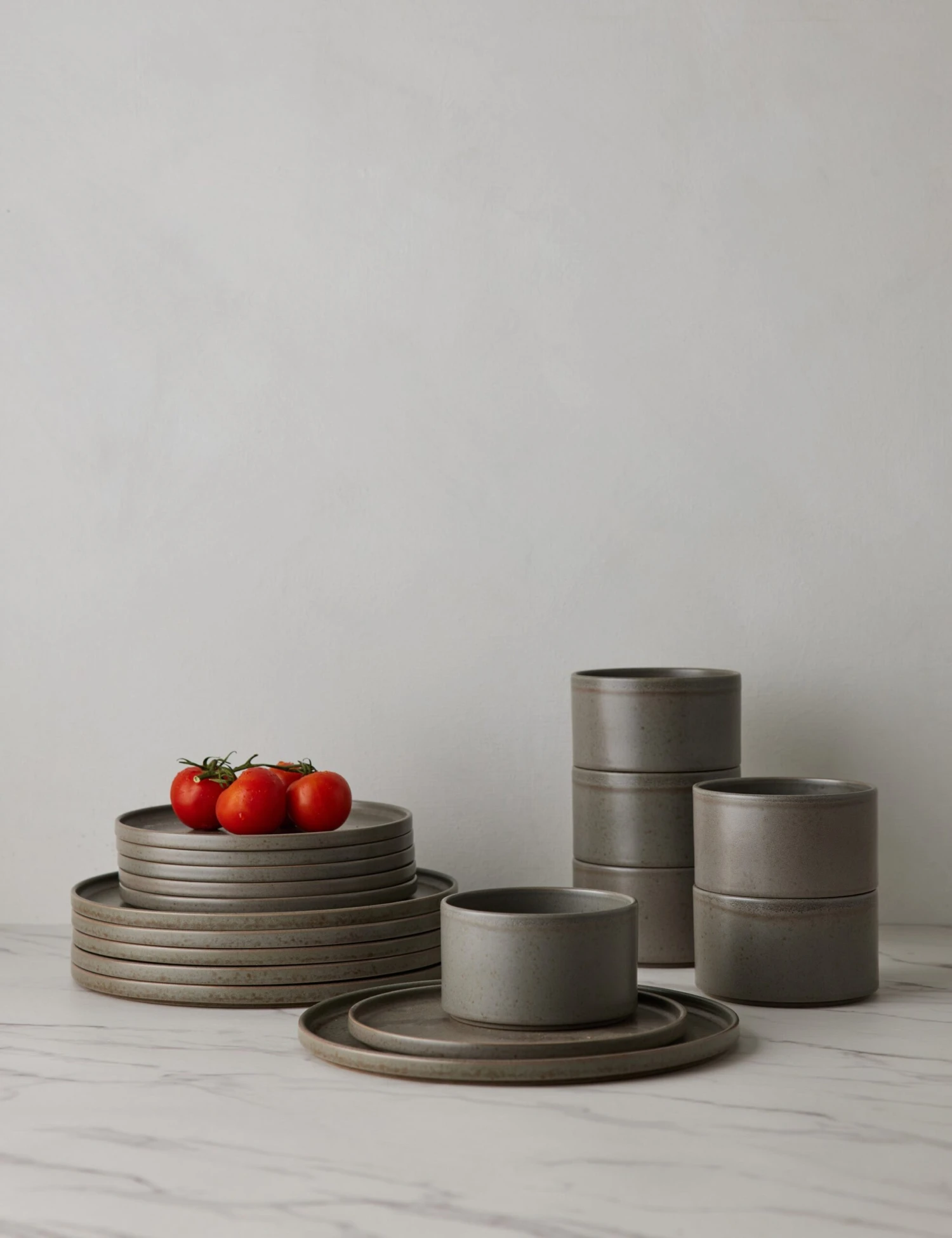 Simply sophisticated and beautifully refined, the Redonda dinnerware collection offers a versatile stoneware dish set made for every savored occasion. With a durable cylindric design, these dishes are stackable and dishwasher safe for everyday appeal from kitchen to table. This set features six table settings, each with a dinner plate, salad plate, and soup bowl.